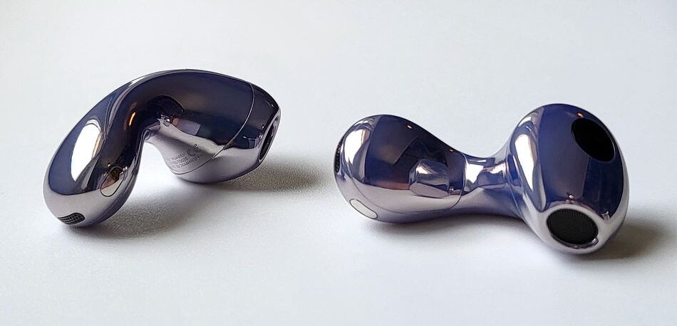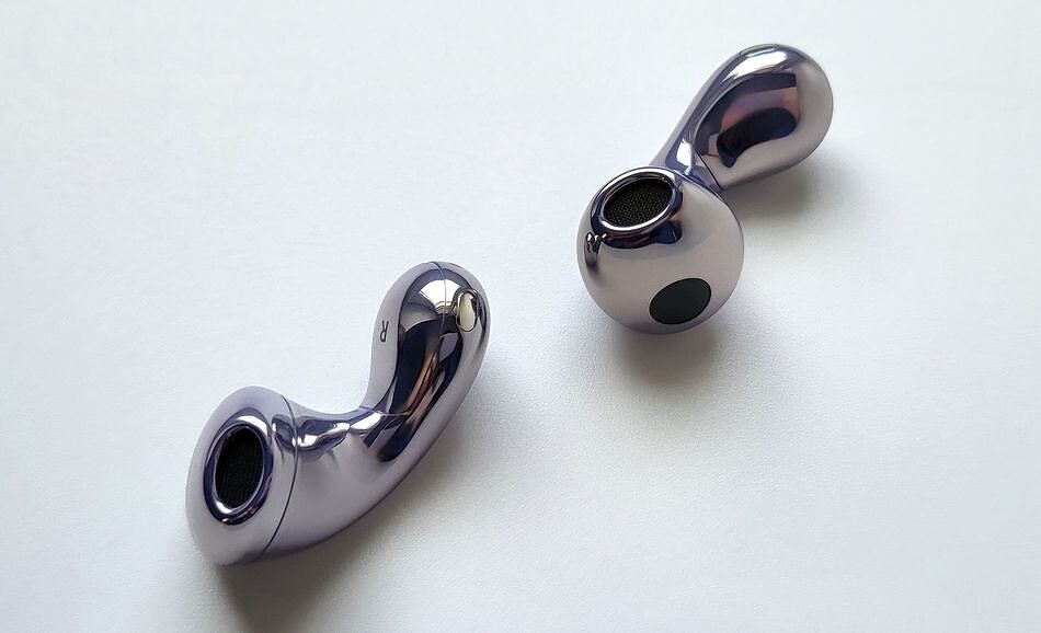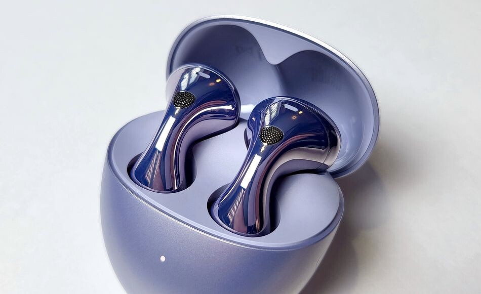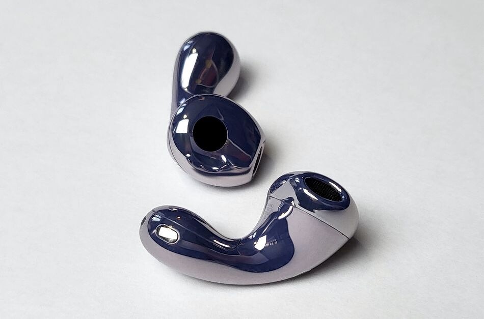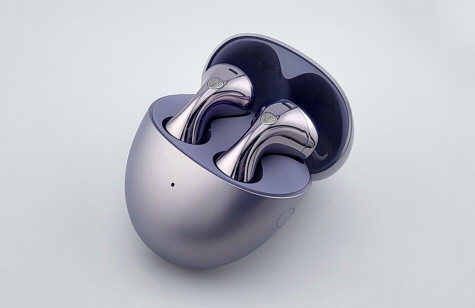 Наушники изготовлены из глянцевого пластика с применением непроводящей вакуумной металлизации, поэтому их поверхность с эффектом «жемчужного лака» красиво блестит и переливается. FreeBuds 6 доступны в нескольких цветах, включая белый, черный и фиолетовый. Последний вариант действительно выделяет модель из общего ряда и вызывает вау-эффект: свежо, стильно и не слишком броско. При этом достаточно универсально, без гендерной привязки.