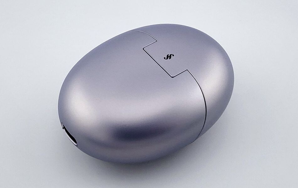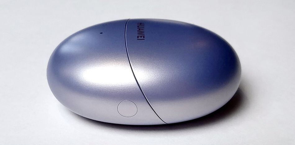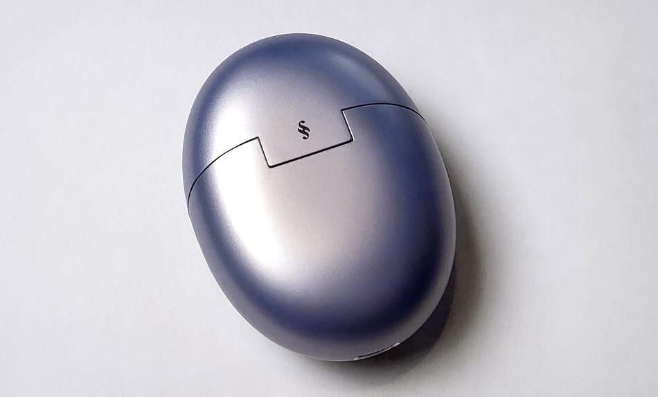 Зарядный кейс очертаниями напоминает слегка приплюснутое яйцо. Пластик гладкий, но не скользкий, очень приятный на ощупь. Очевидно, что корпус выполнен в цвет наушников.