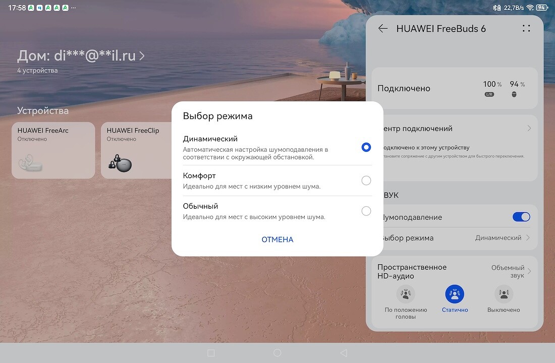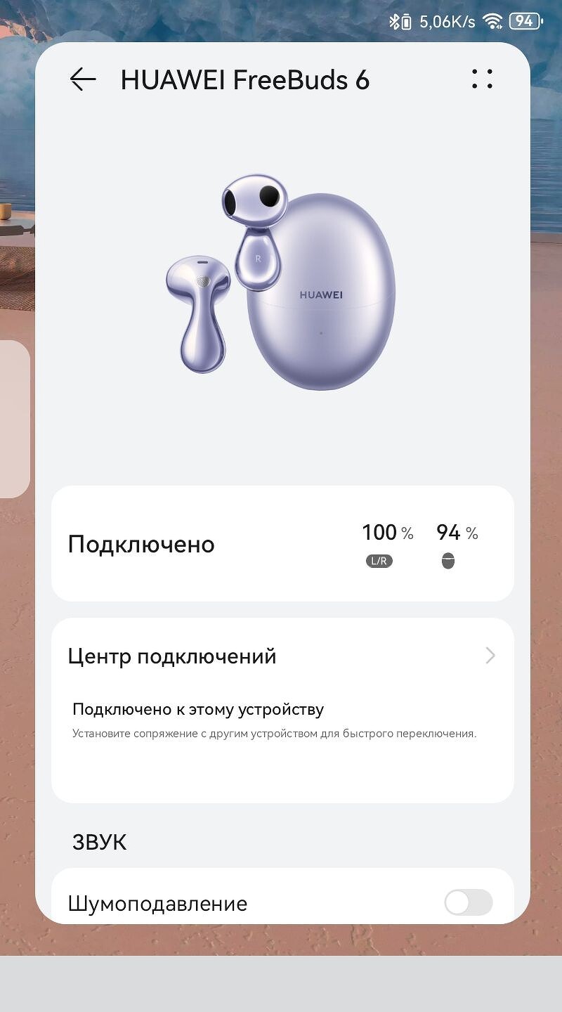Управление всеми функциями HUAWEI FreeBuds 6 сосредоточено в приложении HUAWEI AI Life, которое доступно для устройств Android и iOS. Оно открывает широкий спектр возможностей, включая активацию и выбор режима подавления, управление обновлениями, выбор звуковых профилей, настройку жестов и многое другое.