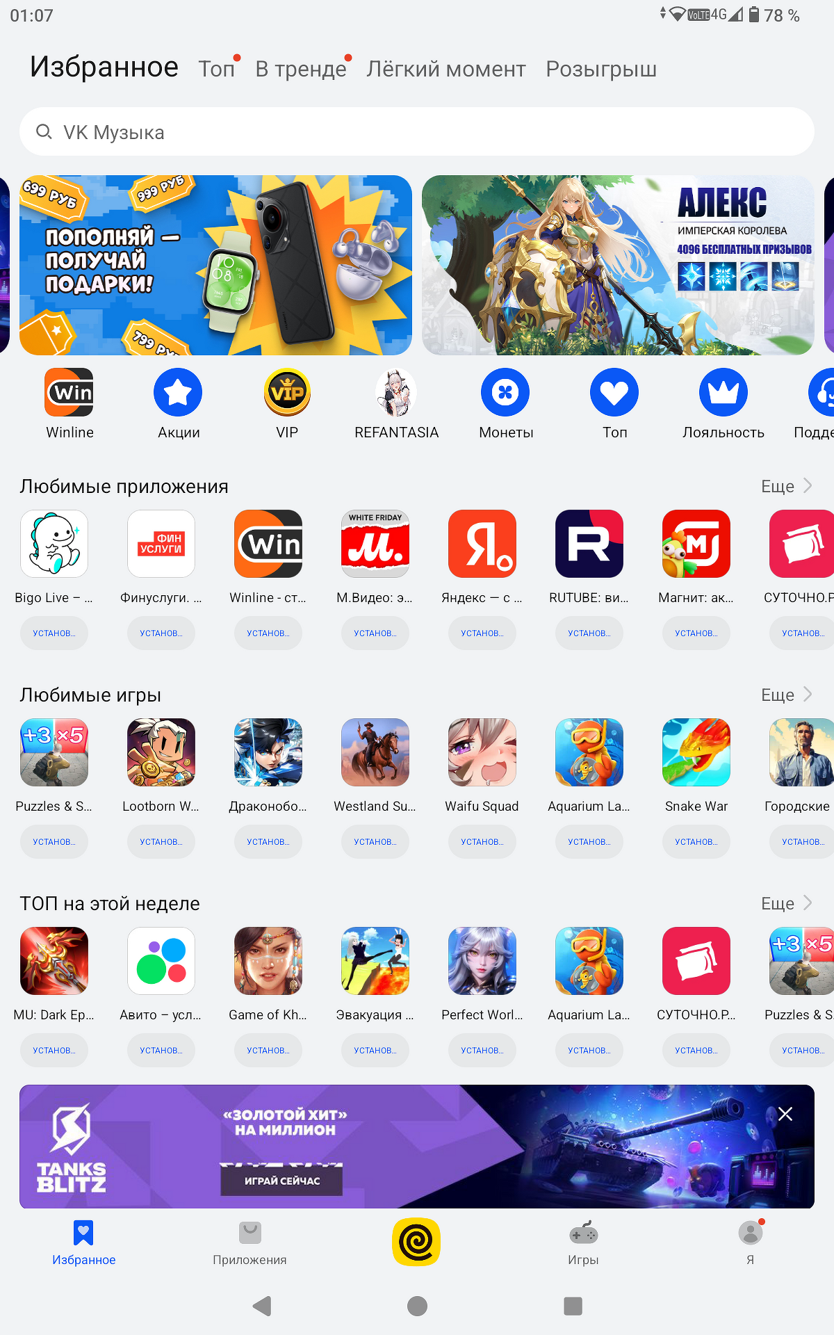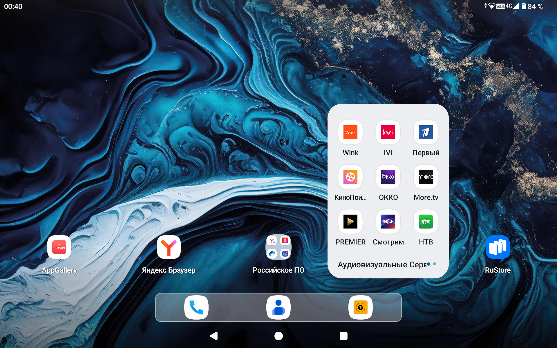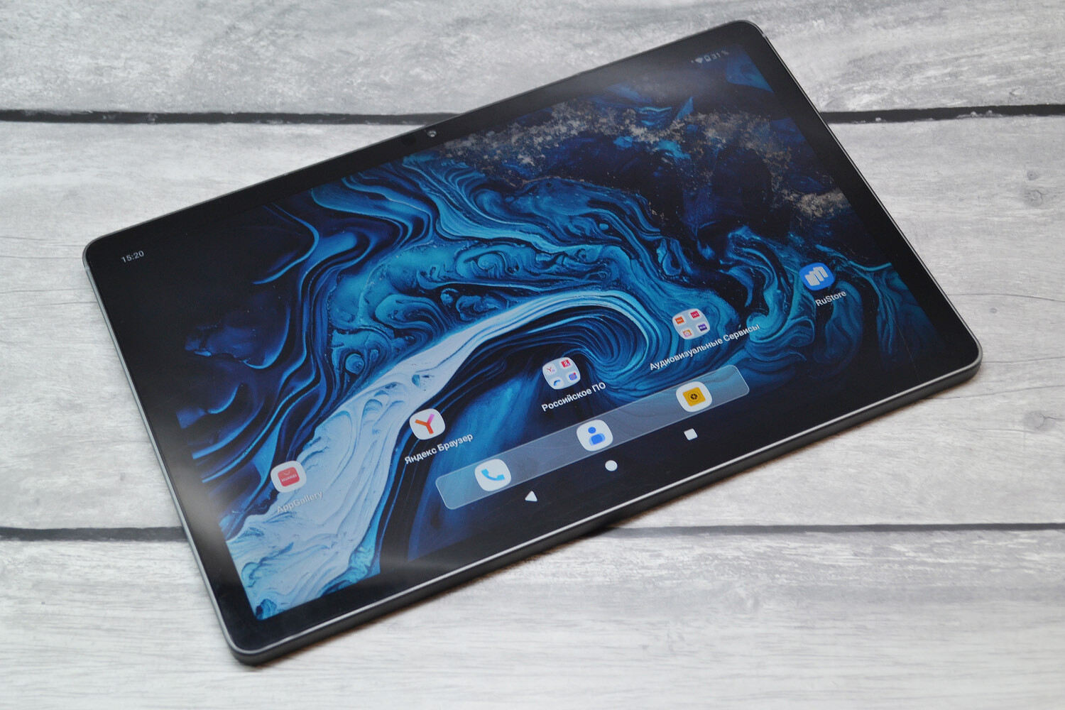 Планшет адаптирован под российский рынок, потому здесь сразу предлагаются популярные программы и сервисы. Однако они не предустановлены — в папках есть только иконки, а скачивать приложения нужно в RuStore или AppGallery, которые как раз уже есть на планшете.