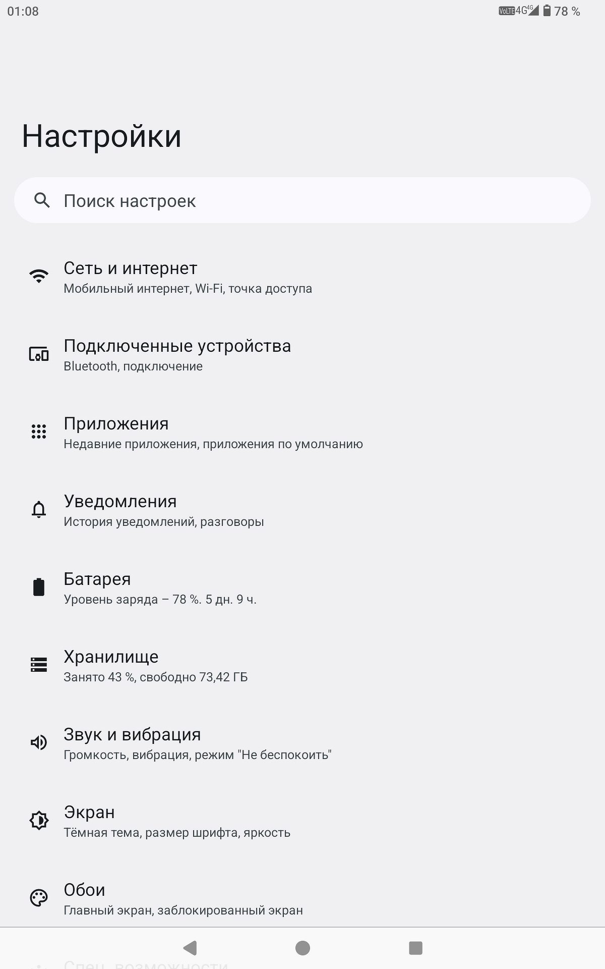 Здесь установлен процессор MediaTek Helio G85 с тактовой частотой до 2 ГГц и графическим модулем Mali-G52 MC2. Как мы уже упоминали, в рассматриваемой конфигурации — 8 Гбайт оперативной памяти и 128 Гбайт на накопителе с возможностью расширения. В целом, начинка вполне годится для беспроблемной работы в повседневных сценариях.
