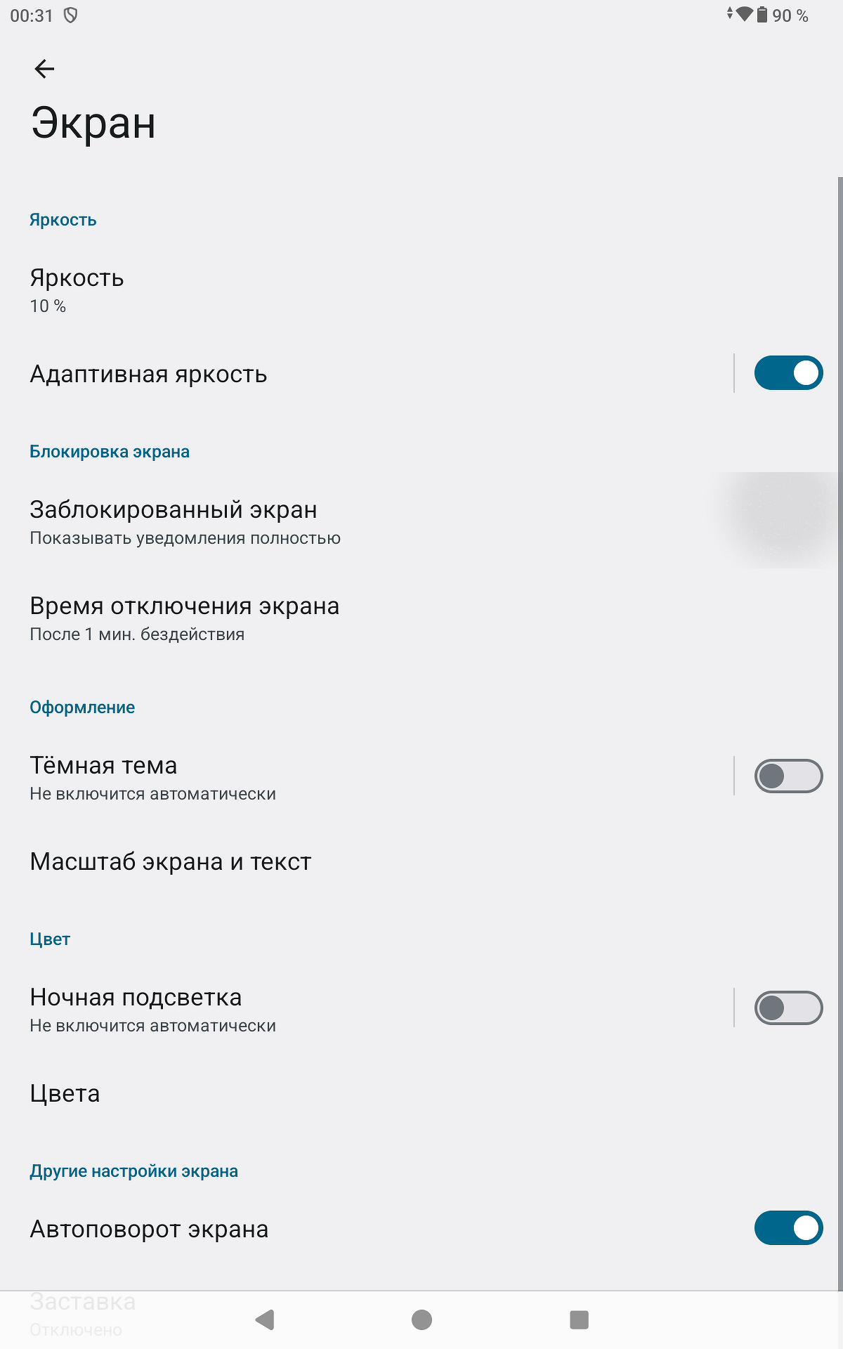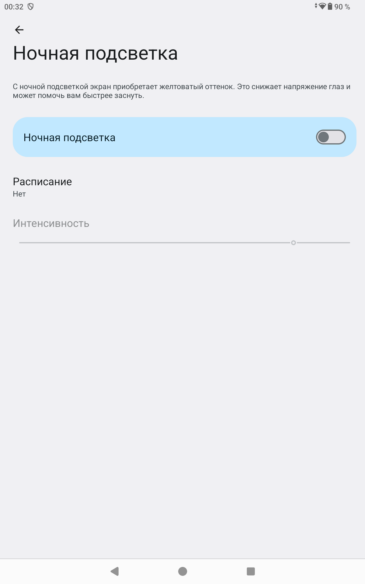 Яркость может регулироваться автоматически, и нужно сказать, что с этим проблем не возникало — датчик достаточно быстро реагирует на условия освещения. Можно активировать режим защиты зрения с более теплыми оттенками («Ночная подсветка») или установить его запуск по расписанию.