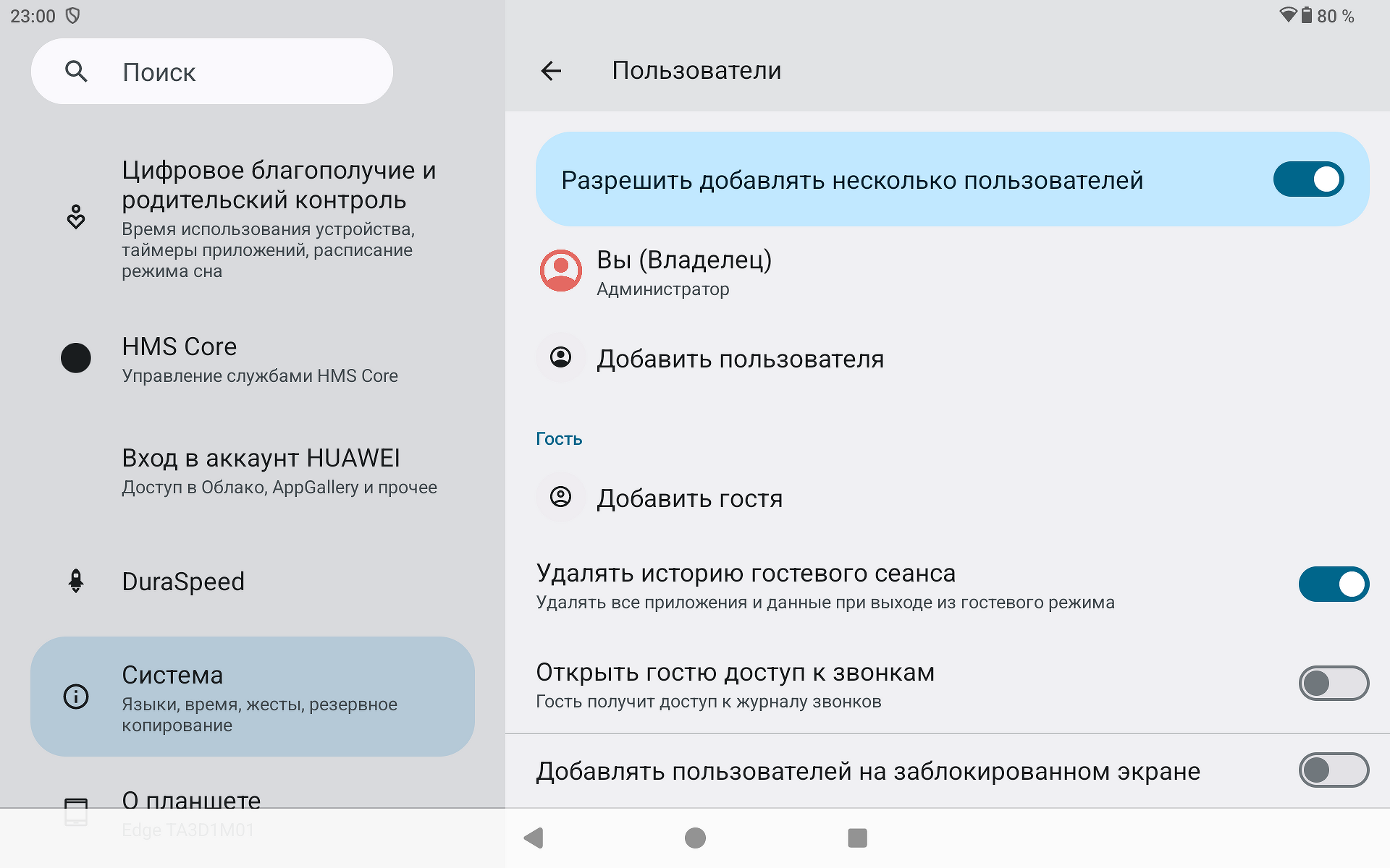Устройство базируется на Android 14, все качественно переведено, нет никаких лишних надстроек, которые дополнительно бы нагружали интерфейс. При этом привычный Android-интерфейс сохранен, а вот привязка к аккаунту Google не нужна. Зато в настройках можно выполнить привязку к HMS.