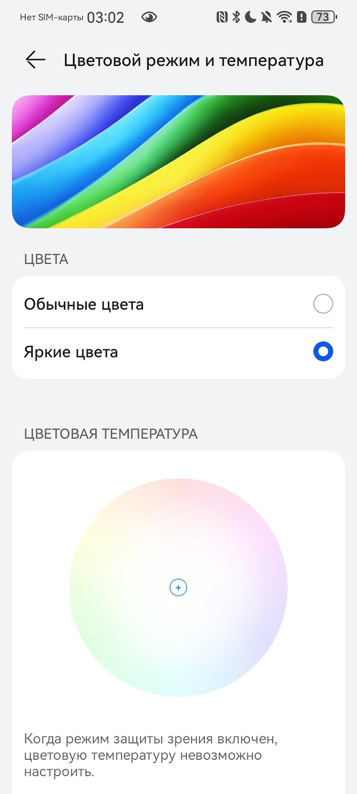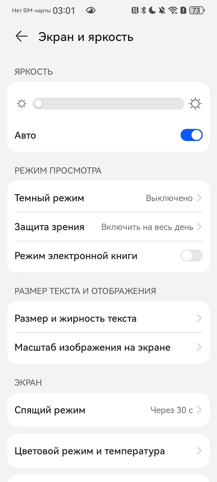 Также в настройках экрана можно скорректировать цветовой профиль, размер и жирность текста, масштаб картинки, убрать вырез наверху и т.д.