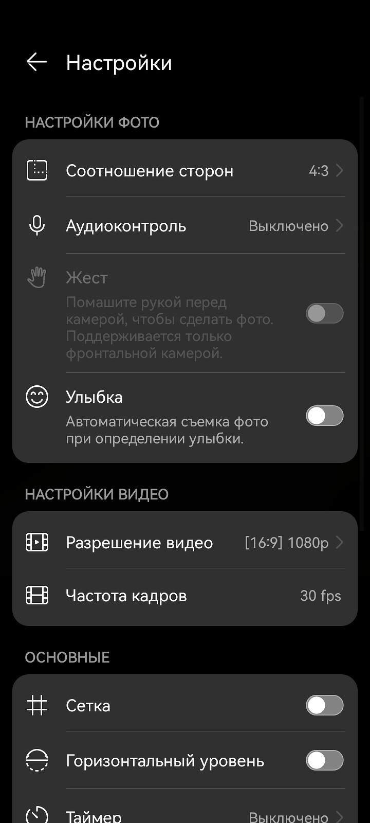 Интерфейс и настройки камеры