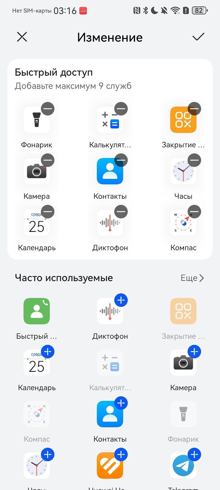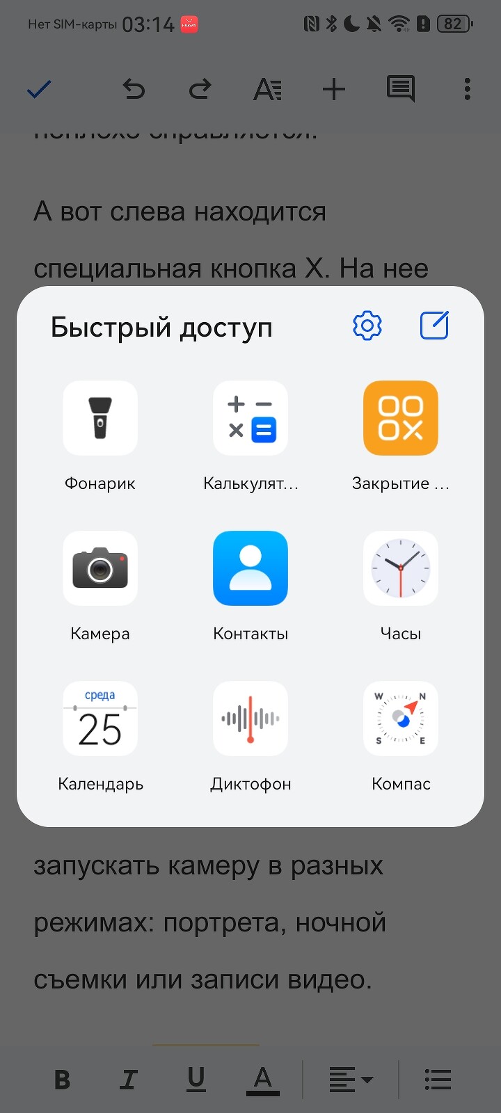 Отдельно остановимся на кнопке Х. По умолчанию при ее нажатии открывается меню быстрого доступа для 9 приложений, в числе которых фонарик, компас, диктофон и другие. Их можно поменять, причем в некоторых случаях предлагается выбрать, открыть в диктофоне записи или начать свою; запустить в Telegram чат с конкретным пользователем; сразу открыть камеру в нужном режиме и др.