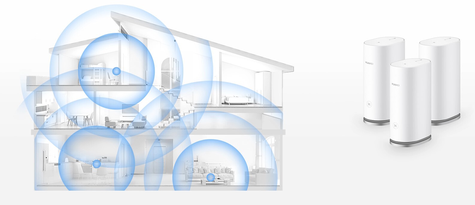 Пример покрытия нескольких этажей при помощи Mesh. Изображение: HUAWEI