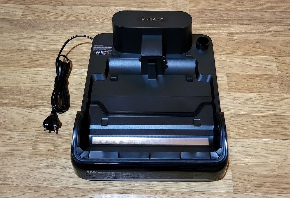 Базовая станция предназначена для зарядки, сушки и промывки пылесоса. Также в ней предусмотрено место, где хранится щетка для дополнительной очистки валика.