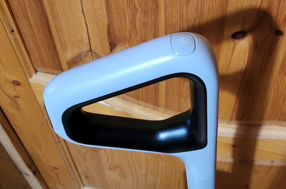 Спереди на ручке расположены две кнопки: «Включение» и «Переключение режима». На тыльной стороне — кнопка активации глубокой очистки или сушки, включается только при размещении пылесоса на базовой станции.