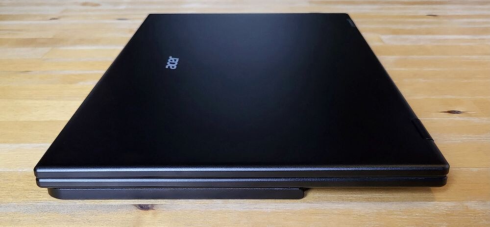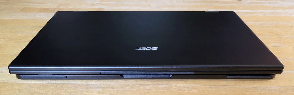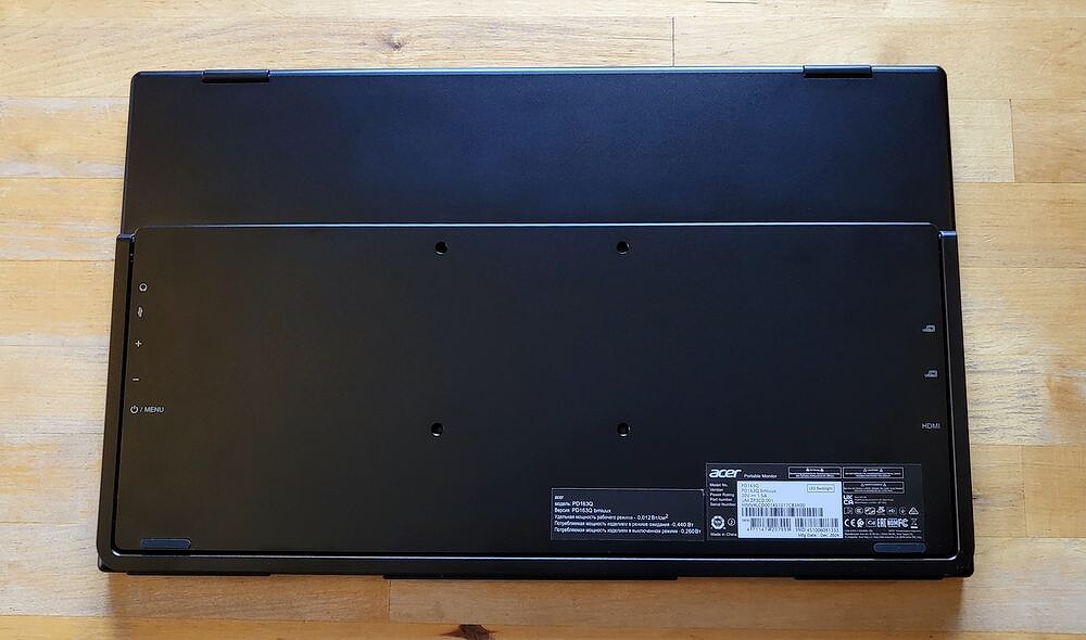 Корпус Acer PD3 — металлический, надёжный, без люфтов. Петли обеспечивают плавное движение модулей относительно друг друга, но с отличной фиксацией. Можно быть уверенным, что конструкция не сложится в неожиданный момент.