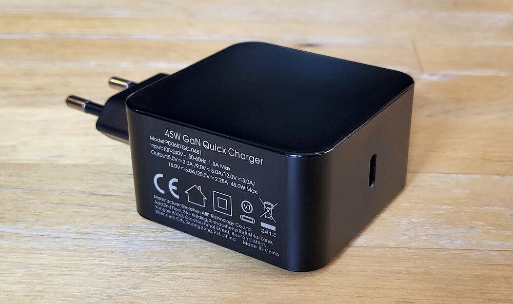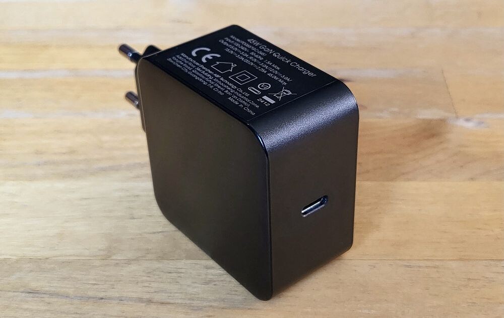 Для обеспечения максимальной яркости, устройство можно подключать к собственному адаптеру питания. Это компактное зарядное устройство 45W GaN Quick Charger с универсальным разъемом USB Type C. Пригодится не только для питания самого устройства, но и для ноутбуков, планшетов или смартфонов. Сразу отметим, встроенного аккумулятора в устройстве не предусмотрено. Благодаря уникальным свойствам графена и нитрида алюминия (GaN) адаптер обеспечивает повышенную скорость зарядки и при этом он весьма энергоэффективен.