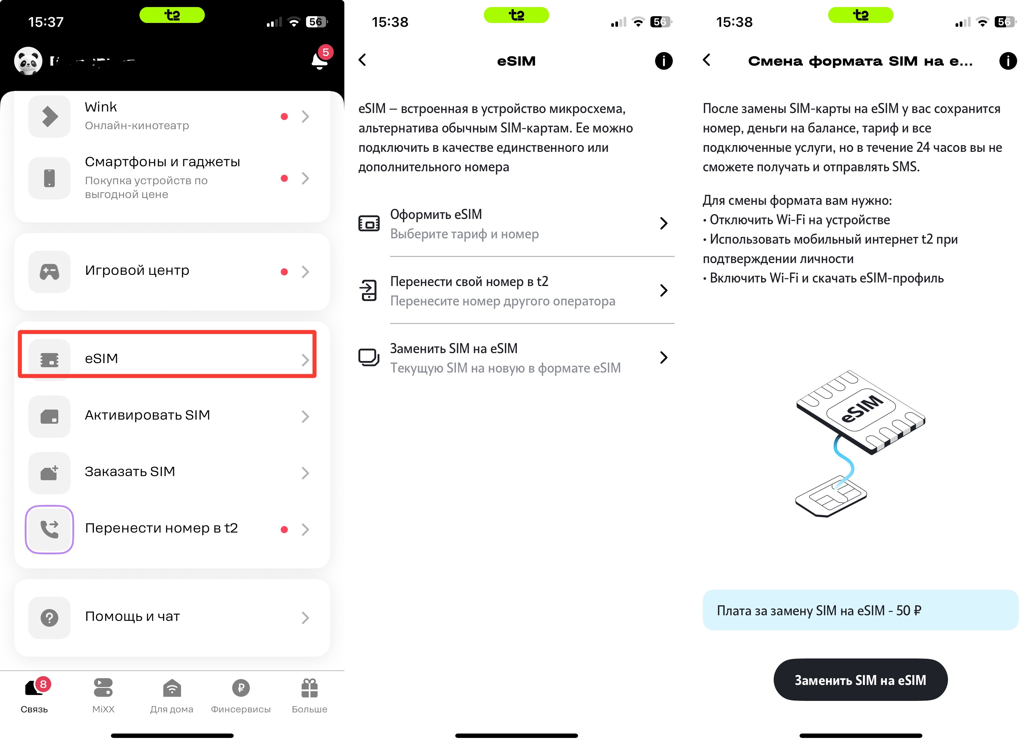 Как активировать eSIM в t2