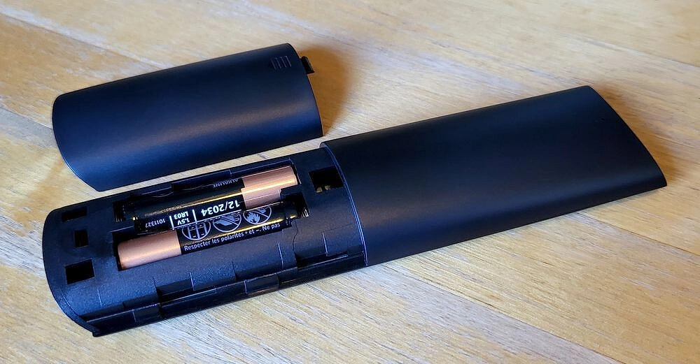 Питание пульта осуществляется от двух батареек формата AAA, но в комплекте поставки их нет. Лучше позаботиться об их наличии заранее.