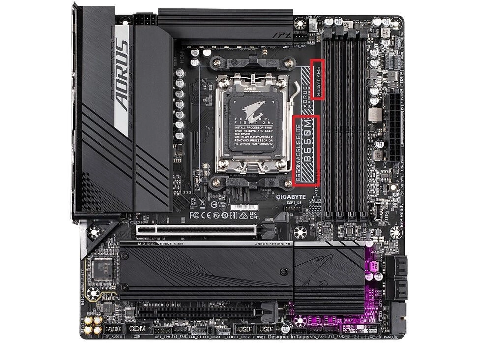 Разъем для процессоров называется сокет. Его тип указывают на материнской плате и в спецификации ЦП. Чтобы обновление прошло успешно, параметры должны совпадать. Например, для процессора AMD Ryzen 7500F с сокетом AM5 идеально подойдет плата GIGABYTE B650M AORUS ELITE.