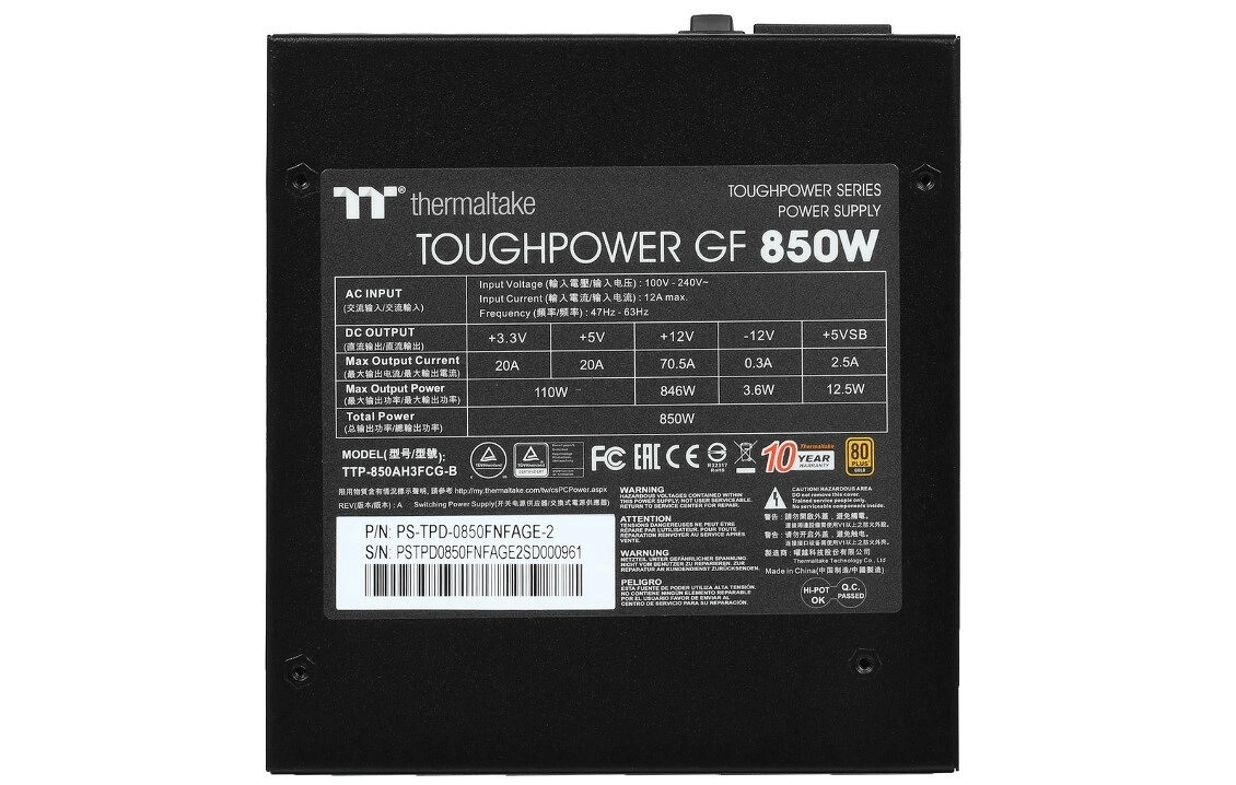 Данные о выходной мощности блока питания содержит наклейка на крышке