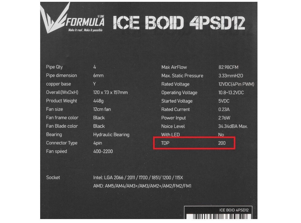 Тепловыделение процессора обозначается аббревиатурой TDP и измеряется в Ваттах. Параметр указан в спецификации, как и рассеиваемая тепловая мощность кулера.