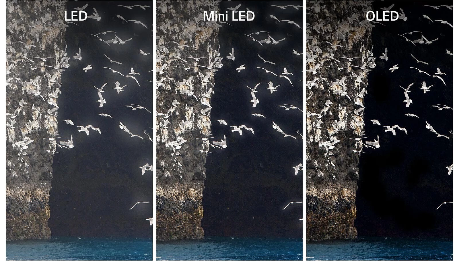 MiniLED предлагает оптимальное сочетание качества и практичности. Высокая яркость, точное локальное затемнение и устойчивость к выгоранию делают эти телевизоры универсальным решением для комнат с любым освещением и динамичного контента. При этом стоимость MiniLED ниже OLED, что делает их привлекательной альтернативой.