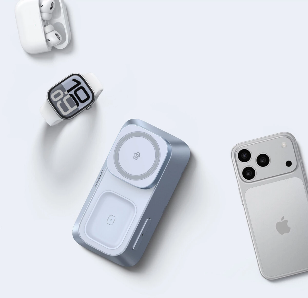 Ниже мы рассмотрим три гаджета из линейки UGREEN MagFlow: магнитный пауэрбанк емкостью 10 000 мА·ч, беспроводное магнитное зарядное устройство 2-в-1 и такое же устройство 3-в-1.