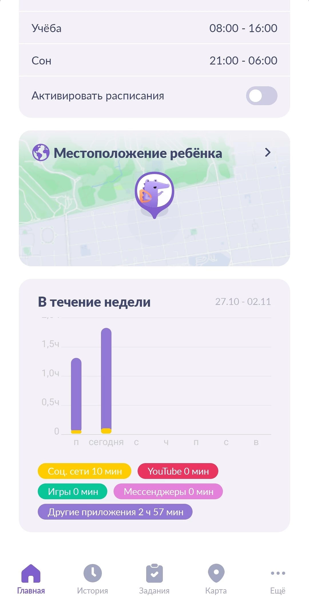 Приложение выполняет функции родительского контроля и позволяет отслеживать местоположение другого пользователя. Истории маршрутов удобно просматривать в отдельной вкладке. Например, их можно фильтровать по дням недели и по времени. Однако сама карта плохо оптимизирована для смартфонов. Объекты на ней выглядят мелкими, а при увеличении становятся еще менее заметными. Это усложняет ориентацию на карте.