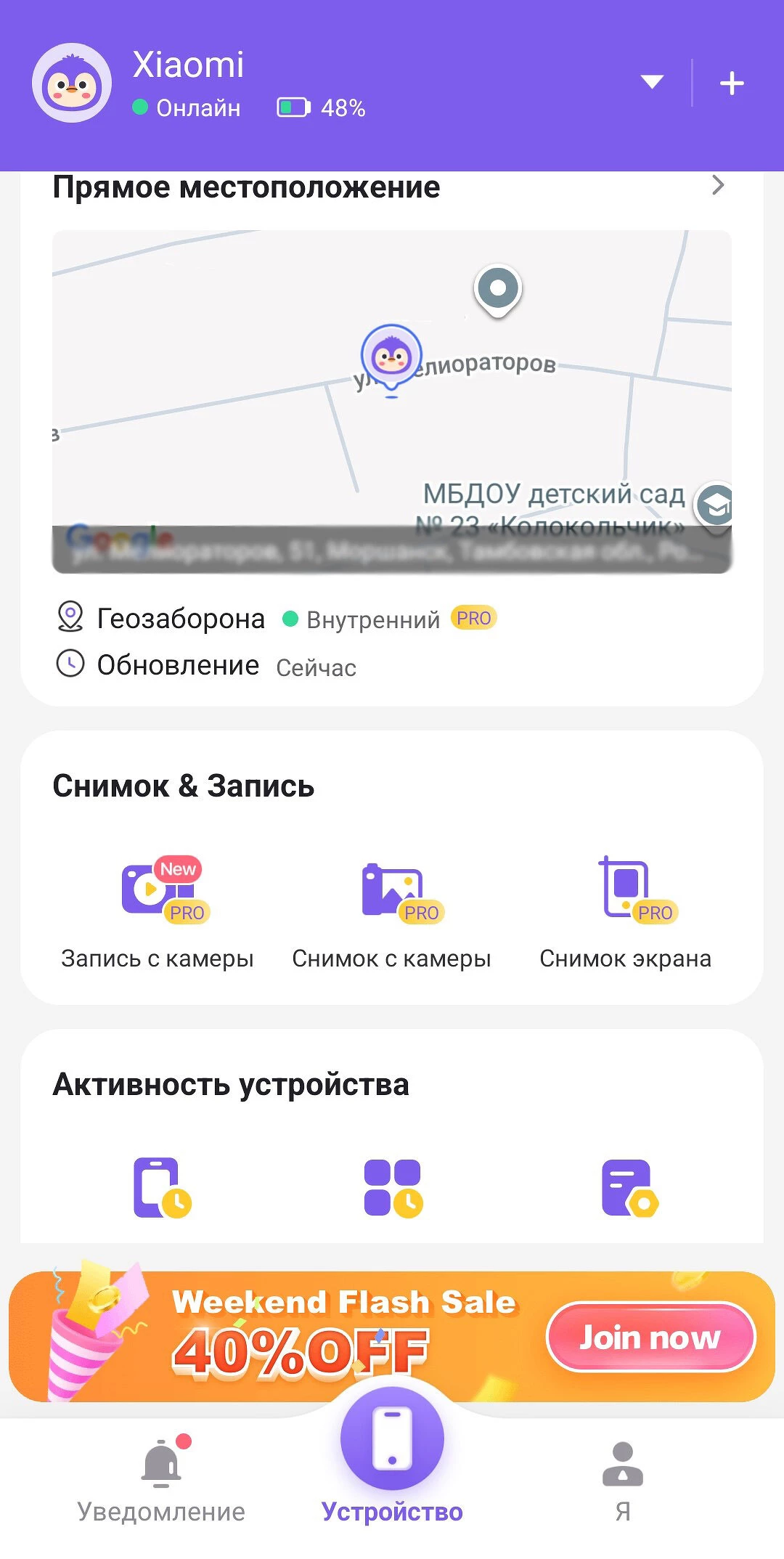 Приложение FlashGet Kids предназначено для родительского контроля, поэтому предлагает расширенные возможности для мониторинга. Помимо определения определения геолокации, оно позволяет делать записи экрана, снимать видео на основную камеру и прослушивать окружение. Эти функции пригодятся, когда ребенок или родственник долго не выходит на связь.