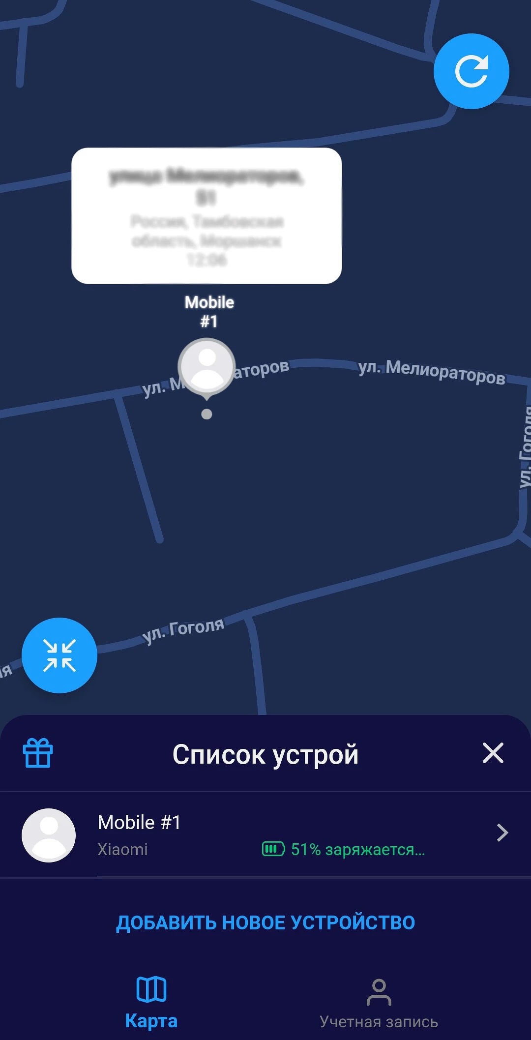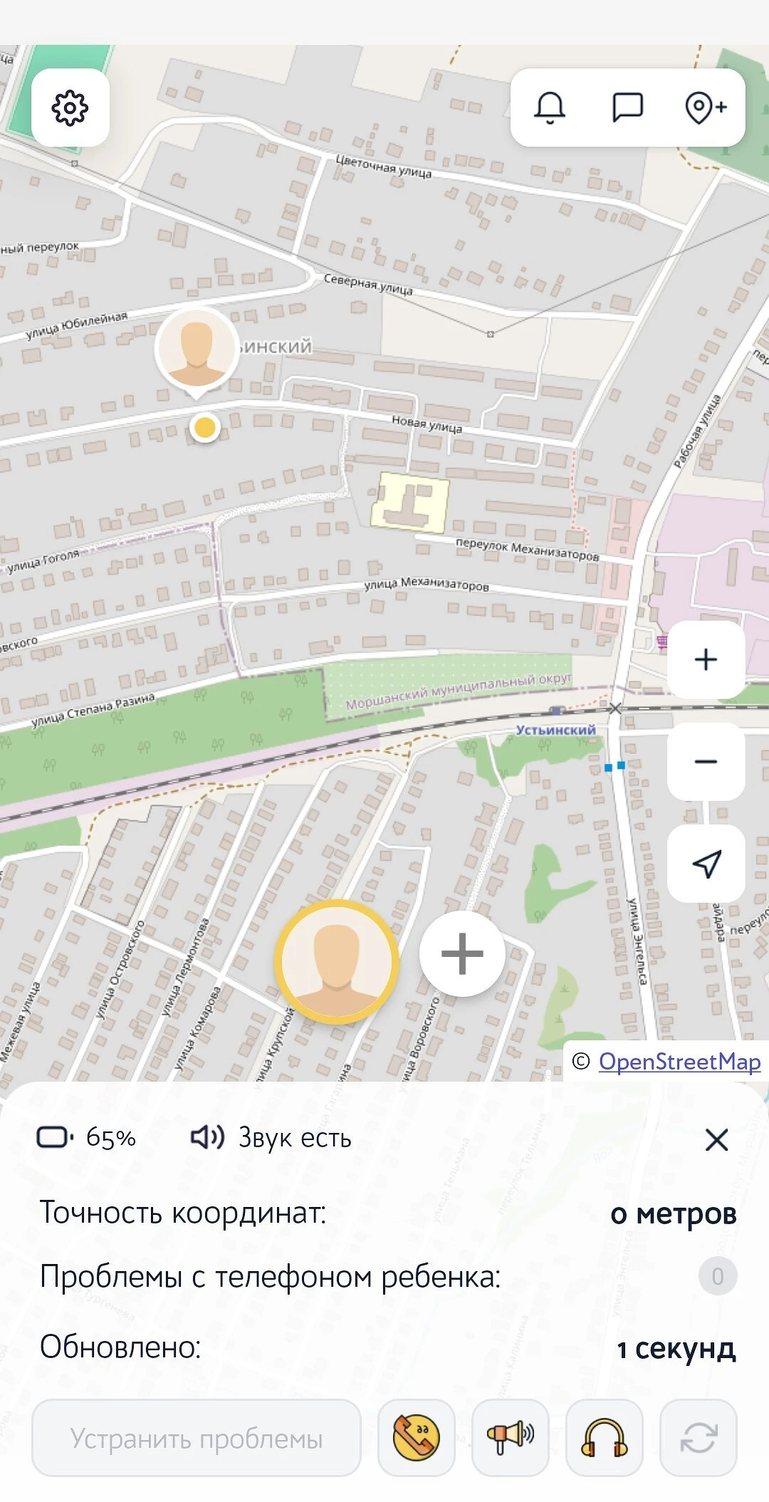 Интерфейс приложения "Семейный локатор — Локатор 24"