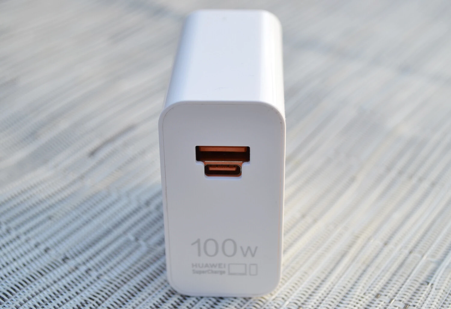 Для зарядки производитель положил в коробку 100-ваттный адаптер, который полностью пополняет батарею примерно за 50 минут. Отметим, что в ЗУ предусмотрено два разъема — USB Type-A и Type-C, так что с его помощью можно заряжать и другие гаджеты.