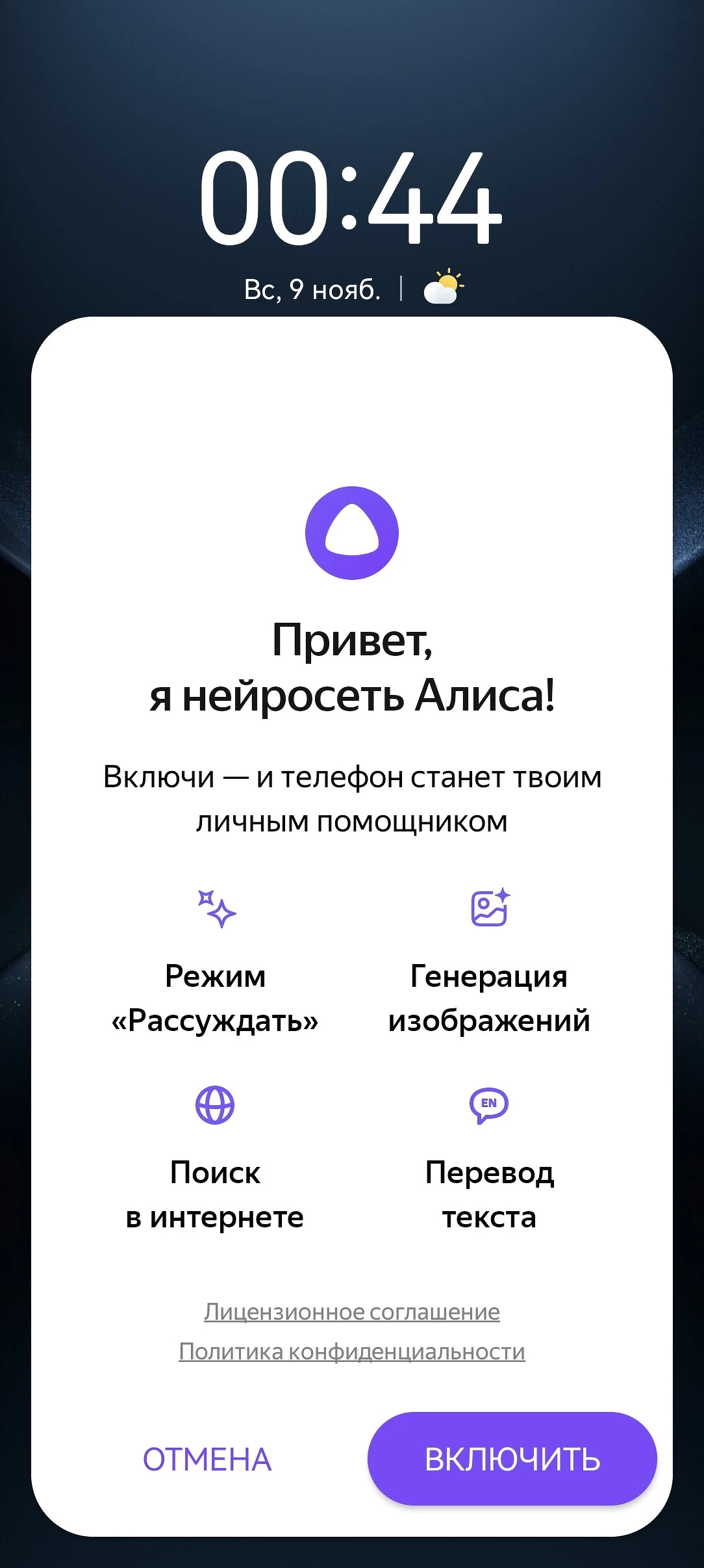 Кроме того, в nova 14 интегрирована Алиса от Яндекса, которая запускается при нажатии кнопки питания, если в смартфоне установлена SIM российского оператора.