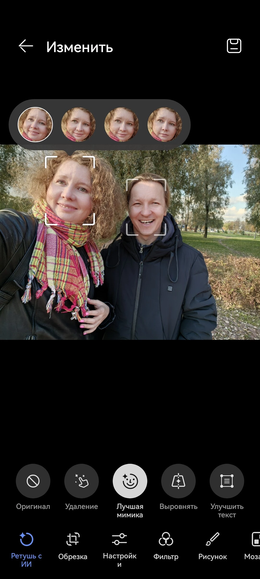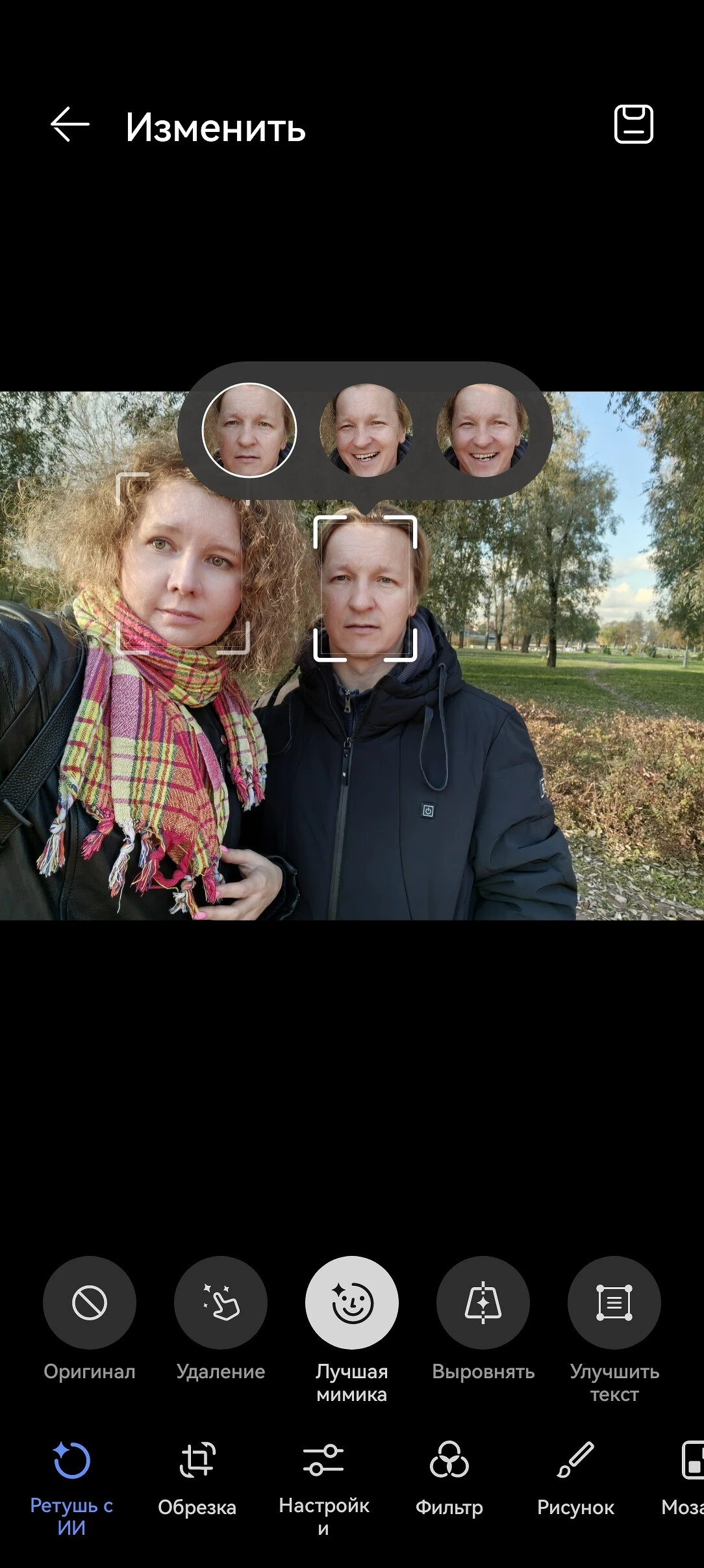 Также с помощью ИИ можно скрывать уведомления на экране, когда посторонние на него смотрят, убирать шумы при разговоре, а при фотосъемке есть возможность выбрать кадр из серии с лучшей мимикой и полностью заменить выражение чьего-то лица на групповом снимке.