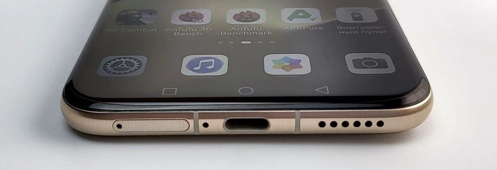 Снизу расположился основной динамик, порт USB Type C, а также слот для двух nanoSIM карт. Сверху — вспомогательный микрофон и решетка второго динамика. Вместе с нижним они обеспечивают стереозвучание. Звук действительно отличный! Дело в том, что верхнему динамику помогает еще и разговорный, вместе они могут соревноваться по мощности с основным, что и создает сбалансированное, с точки зрения стереопанорамы, звучание. Запас громкости — достаточный, звук не захлебывается и не дребезжит даже на максимальном уровне.