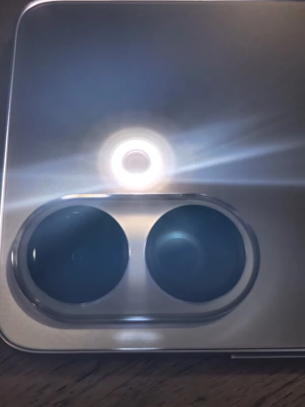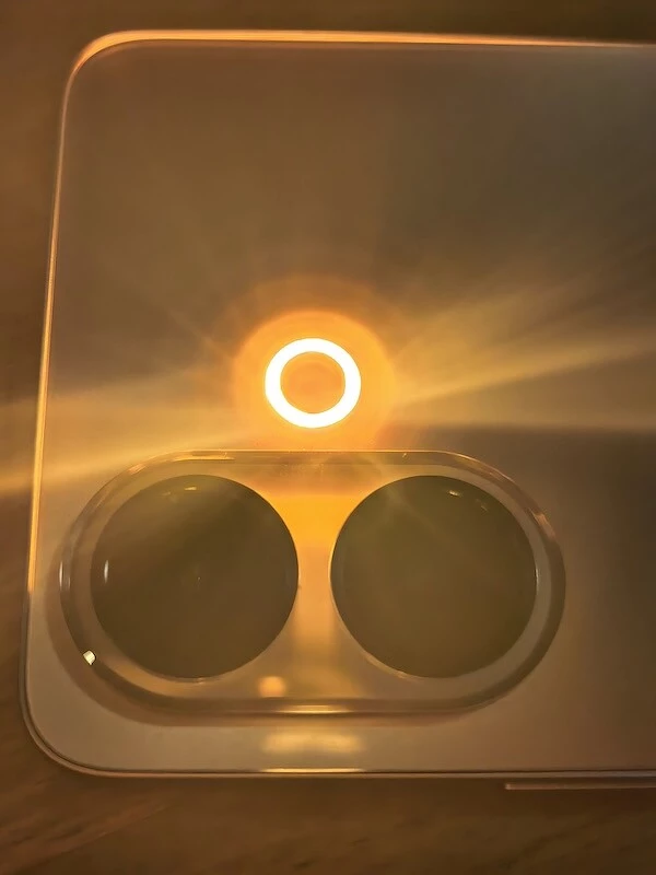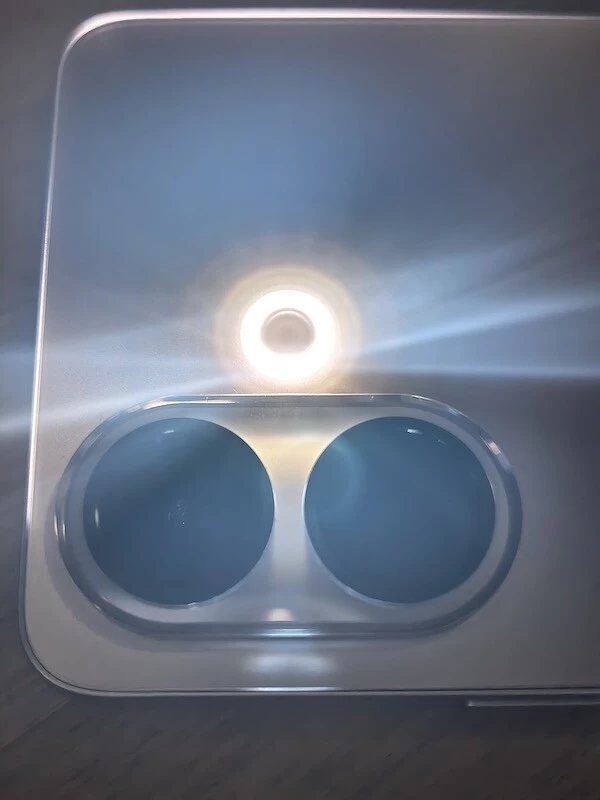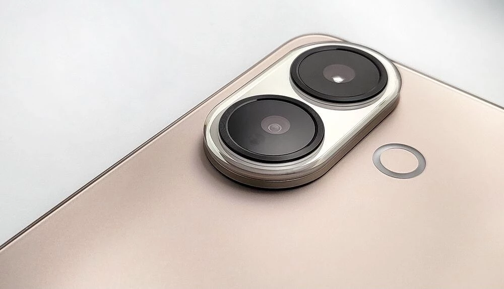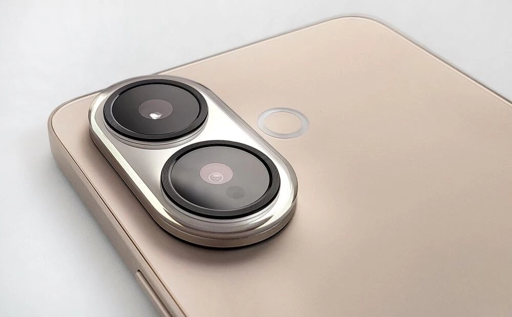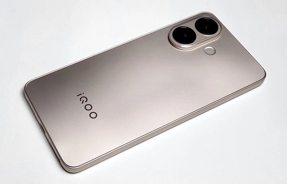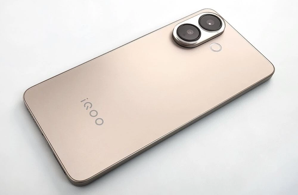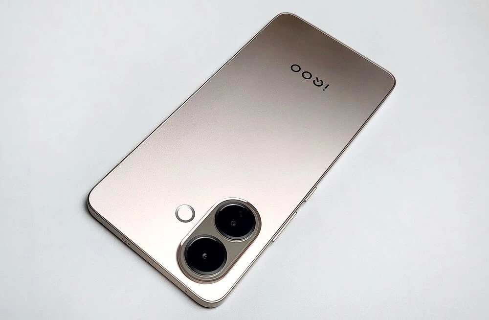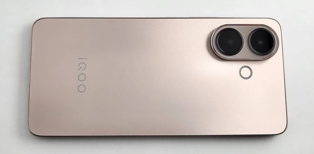 Корпус смартфона iQOO Z10R реализован в классическом стиле: ровные торцы, передняя стеклянная панель без изгибов и «водопадов», спинка — из композитного пластика, переливающегося на свету. Модуль камер — два заметных кружка, отороченных рамкой на скругленной площадке, которая на пару миллиметров возвышается над спинкой и кольцевая вспышка, выполненная заподлицо с основной поверхностью.