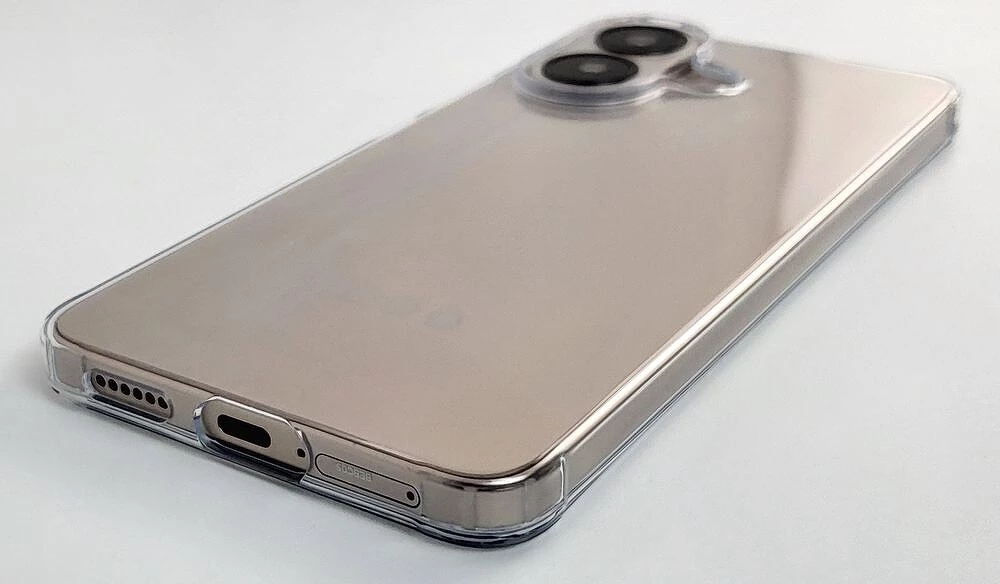 Прямые, но рубленные грани рамы отлично нивелируются комплектным прозрачным силиконовым чехлом. Он достаточно мягкий на ощупь, но при этом плотно сидит на корпусе и отчасти сможет скомпенсировать энергию удара при падении. Чуть возвышающиеся над дисплеем бортики чехла будут минимизировать количество царапин от твердых абразивных элементов на поверхности, когда смартфон лежит экраном вниз.