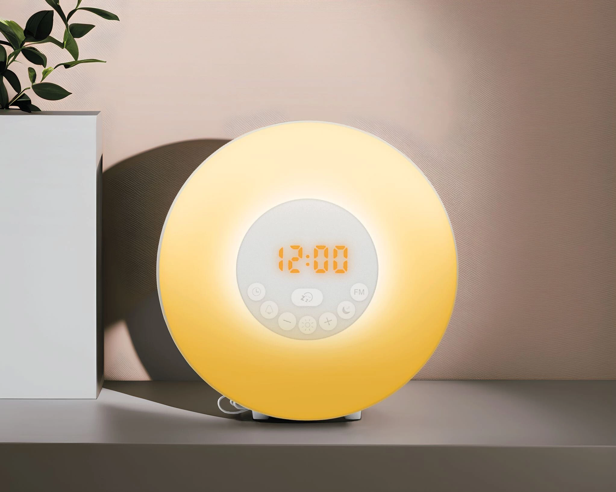 Аудио-колонка со световым будильником — гибрид ночника, рассветного будильника и компактной Bluetooth-акустики. Световой модуль работает на LED-основе и поддерживает плавную динамику яркости, благодаря которой устройство имитирует рассвет. Эффект постепенного пробуждения можно сочетать со звуковым сопровождением — от шума волн до пения птиц. Лампа работает как обычный декоративный светильник с семью оттенками подсветки, которые можно менять под обстановку.