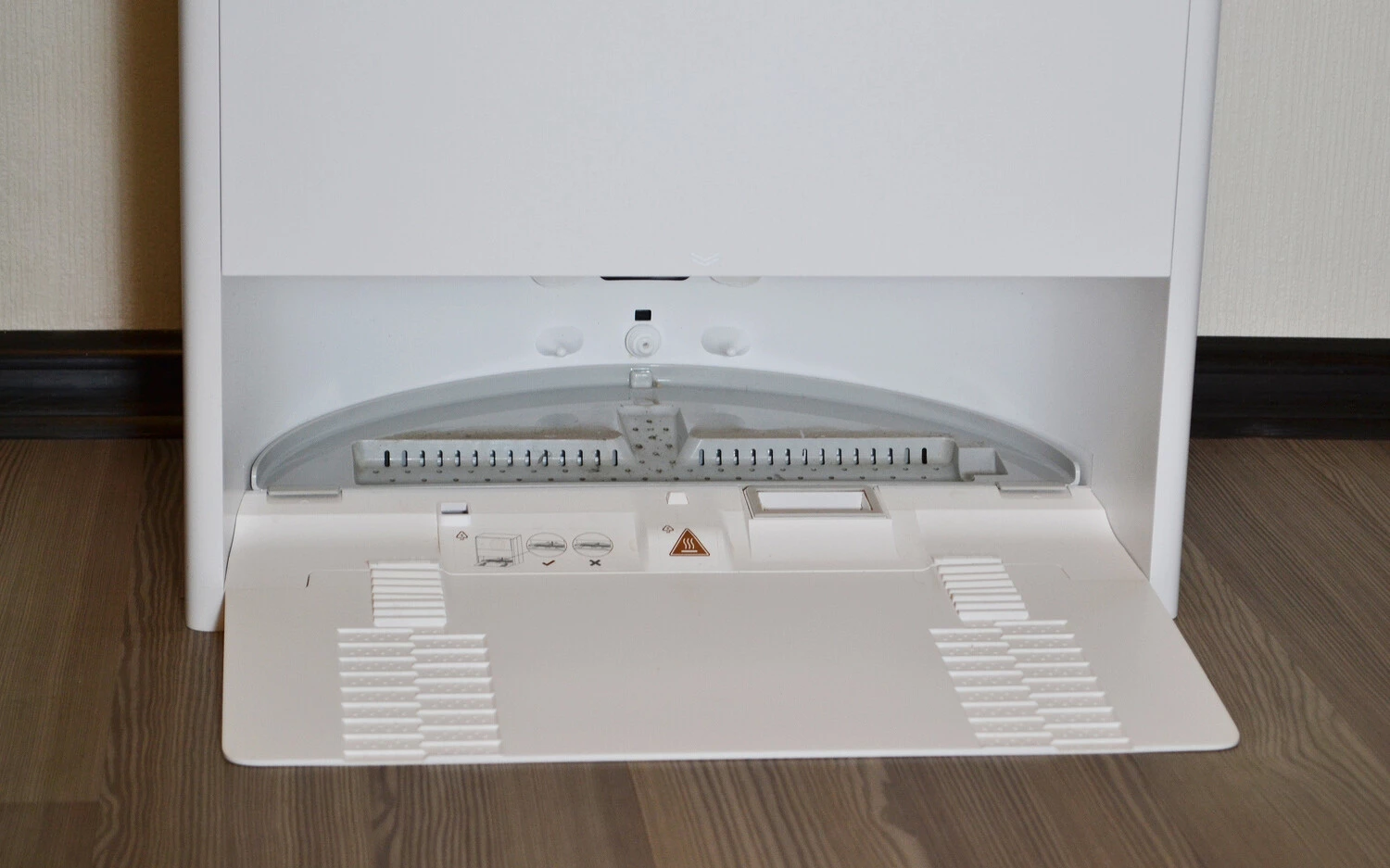 Внизу — «парковочное место» для пылесоса. Тут есть углубление, где идет промывка ролика водой с температурой 100 °C, то есть буквально кипятком. При таком варианте бактерии, микробы, грязь убираются максимально эффективно.