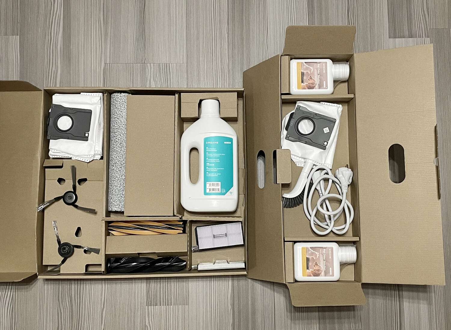 Dreame Aqua10 Ultra Roller Complete поставляется со станцией самообслуживания и большим набором расходников, на котором стоит заострить внимание — ведь расширенная комплектация позволяет пользователю хотя бы на год забыть о необходимости что-либо докупать и вообще ломать над этим голову.