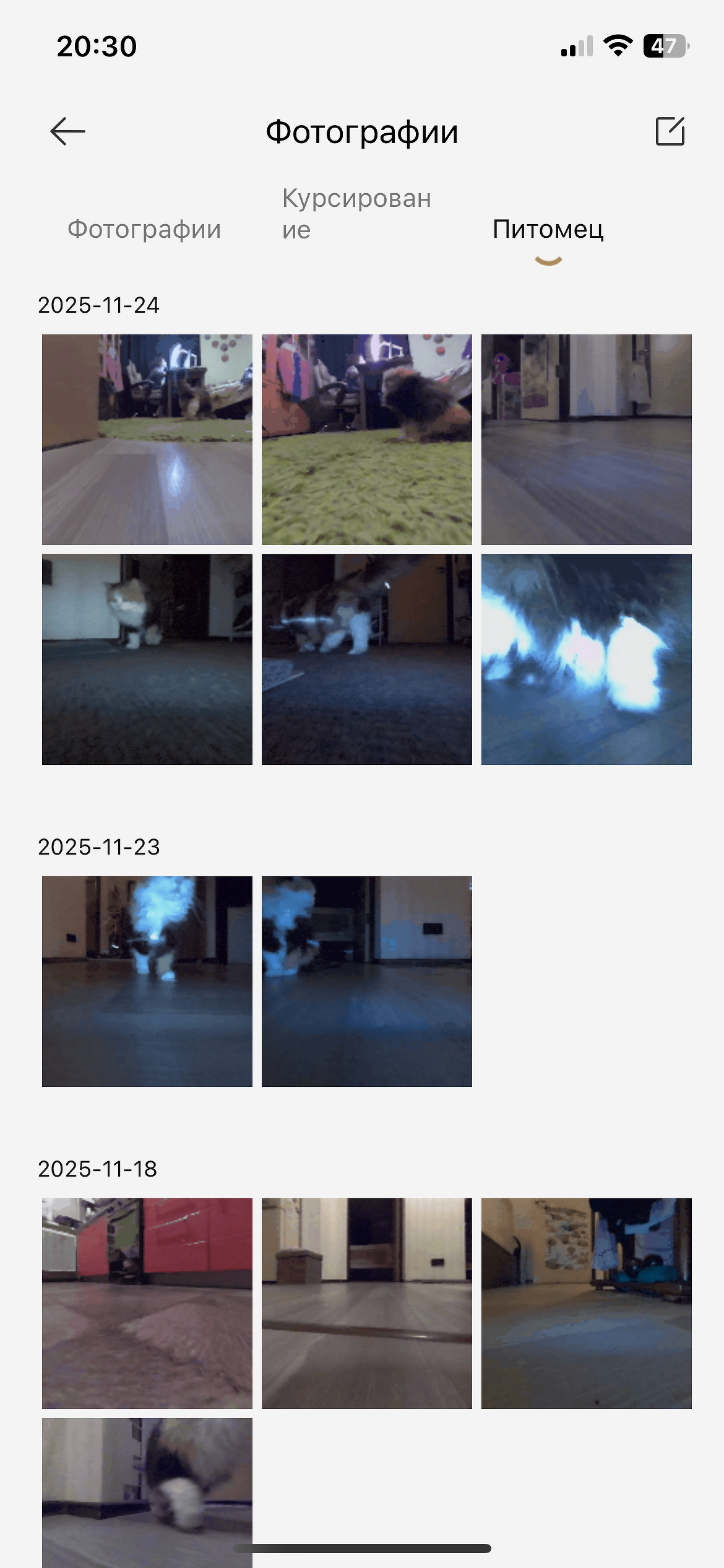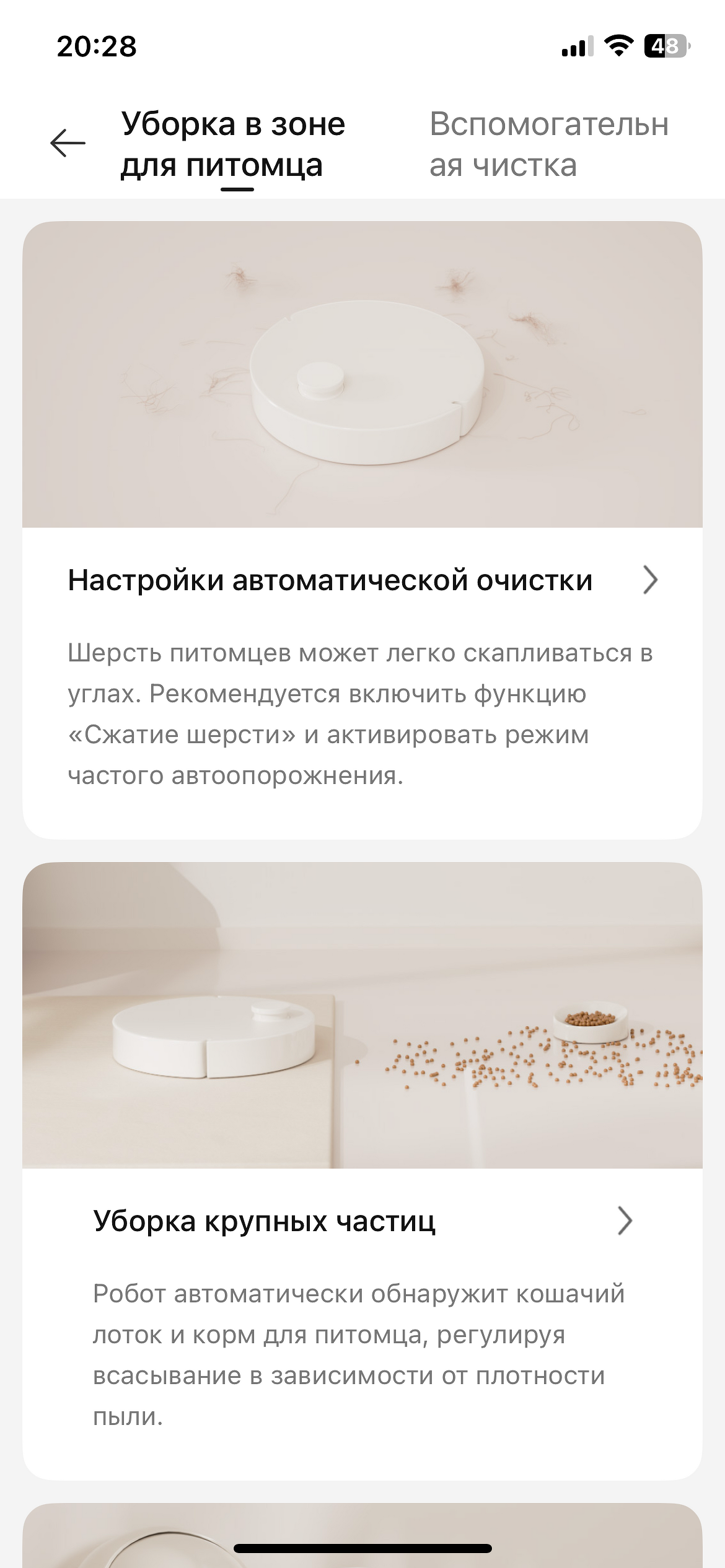 - отдельно просмотреть зоны активности питомца в квартире, видео с ним, выставить параметры уборки за животным;
