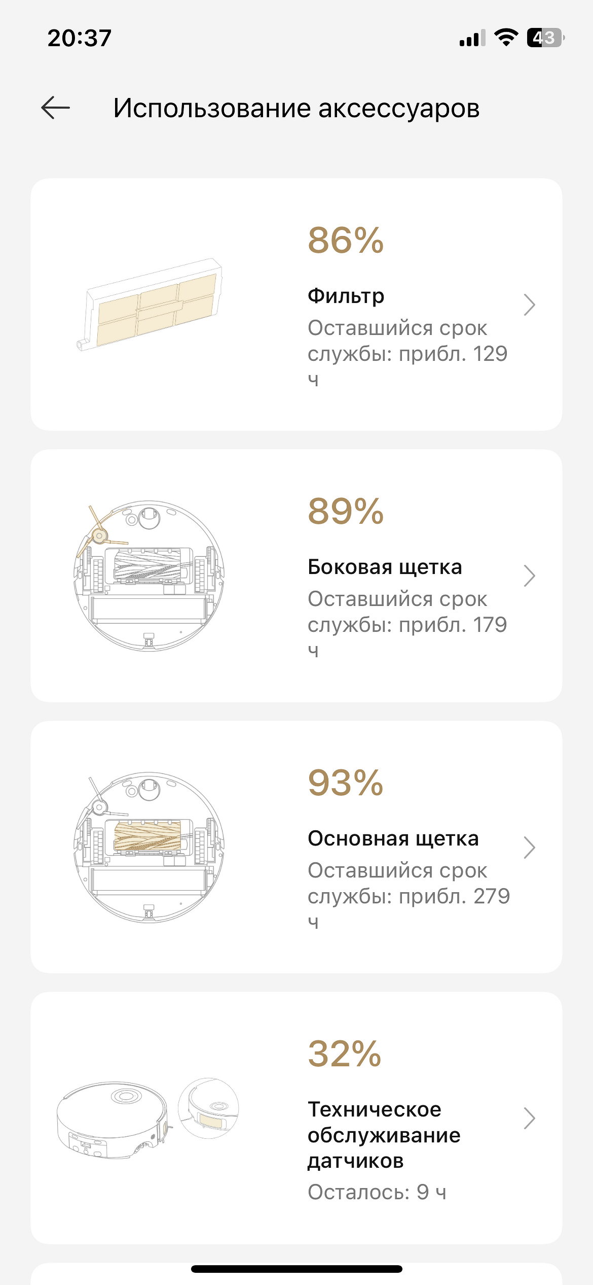 Также можно просмотреть историю уборок, где будет указано даже число заходов на станцию для промывки швабр, и запланировать их. Тут же предлагается: