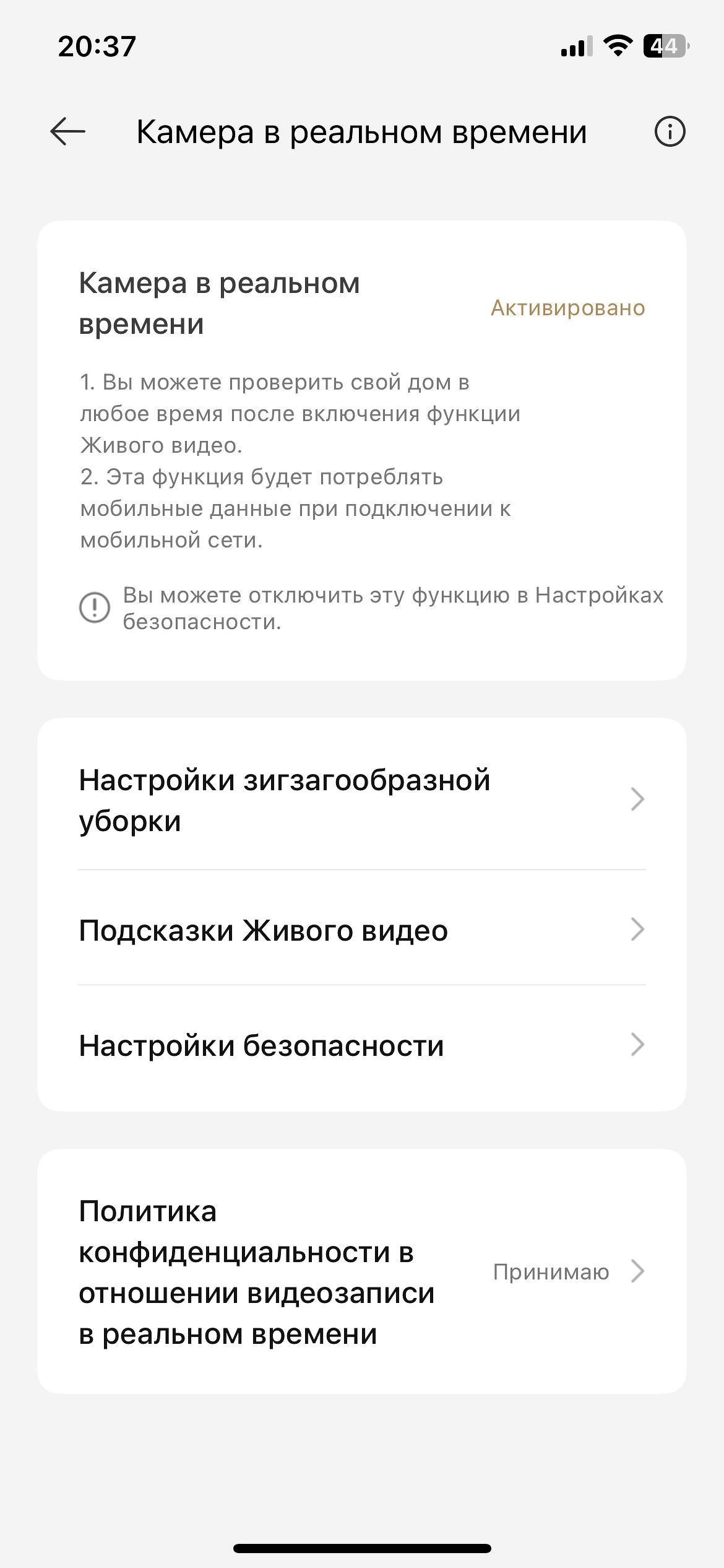 - активировать съемку на камеру в реальном времени (удобно, если нужно присмотреть за квартирой или проверить что-то, когда вас нет дома);