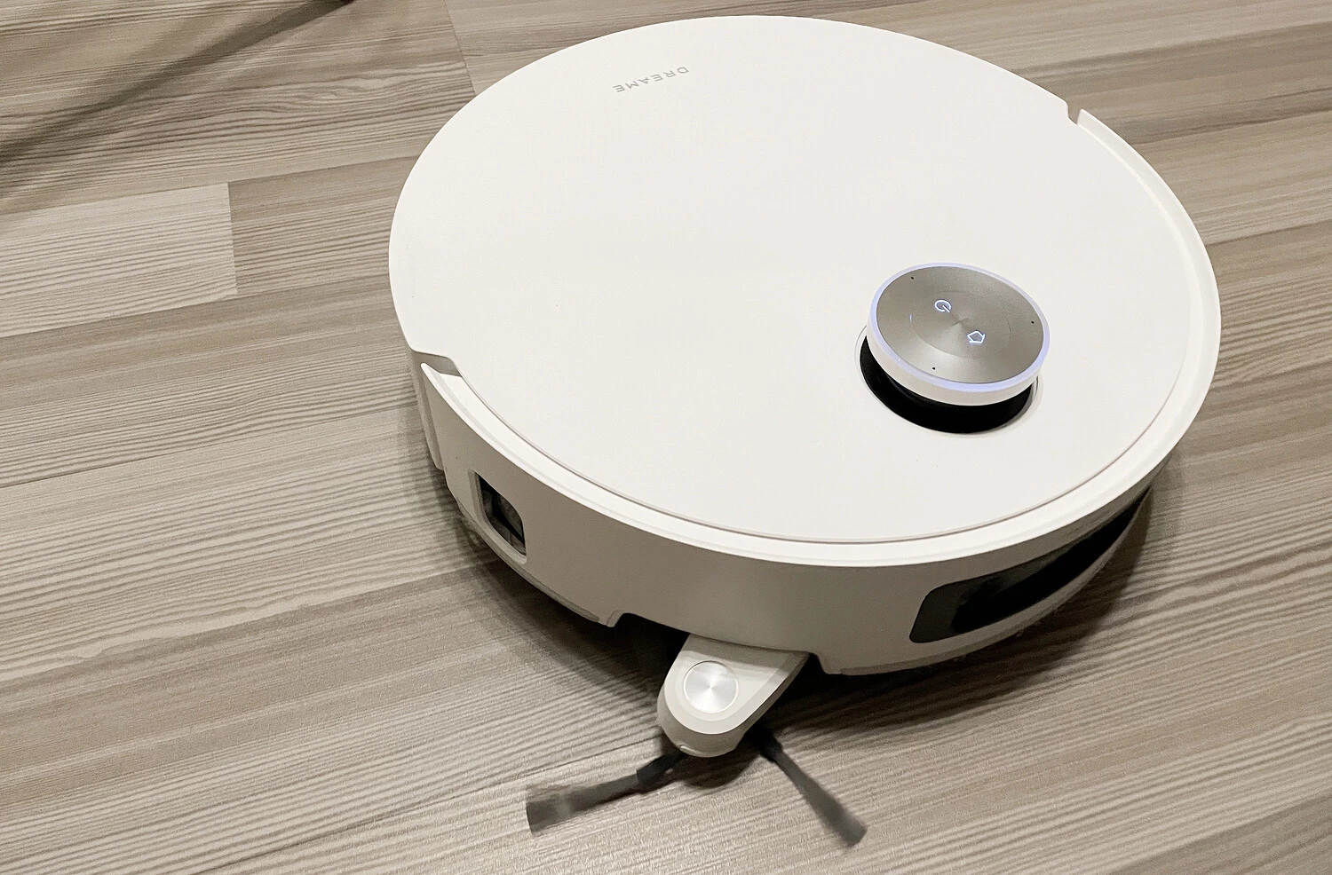 Для объезда объектов на полу робот задействует двойную 3D-камеру с LED?подсветкой. На практике Dreame Aqua10 Ultra Roller Complete хорошо распознает предметы на полу и объезжает их в процессе уборки. У нас не возникло проблем с валяющимися проводами, домашними тапками, игрушками, сухим кормом питомца и его мисками, детским конструктором, игрушками и даже крупными элементами пазлов. В темноте все было не столь позитивно — пару раз робот попытался зажевать провода, сдвинул черный носок.