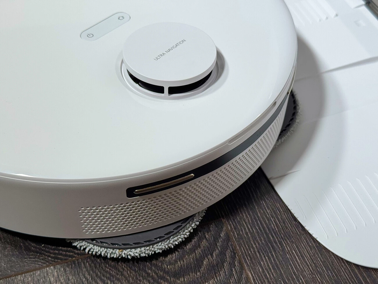 У робота тоже компактные габариты — всего 35 х 35 х 10,8 см, что позволяет ему с ловкостью маневрировать в труднодоступных местах: под низкими журнальными столиками, вдоль плинтусов, в узких промежутках между мебелью. При этом риск застревания сводится к минимуму благодаря небольшой высоте, а закругленные края корпуса предотвращают случайные зацепления за ковры или провода.