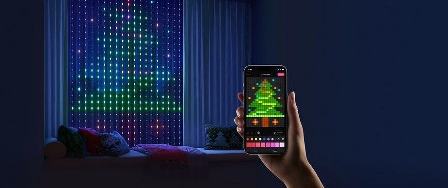 Гирлянда имеет 540 RGB-светодиодов, которые могут отображать свыше 16 млн цветов: можно настроить один основной цвет, переливы и переход от цвета к цвету. Также есть возможность выбирать готовые анимации или создавать свои собственные. Ресурс используемых светодиодов составляет 30 000 часов.