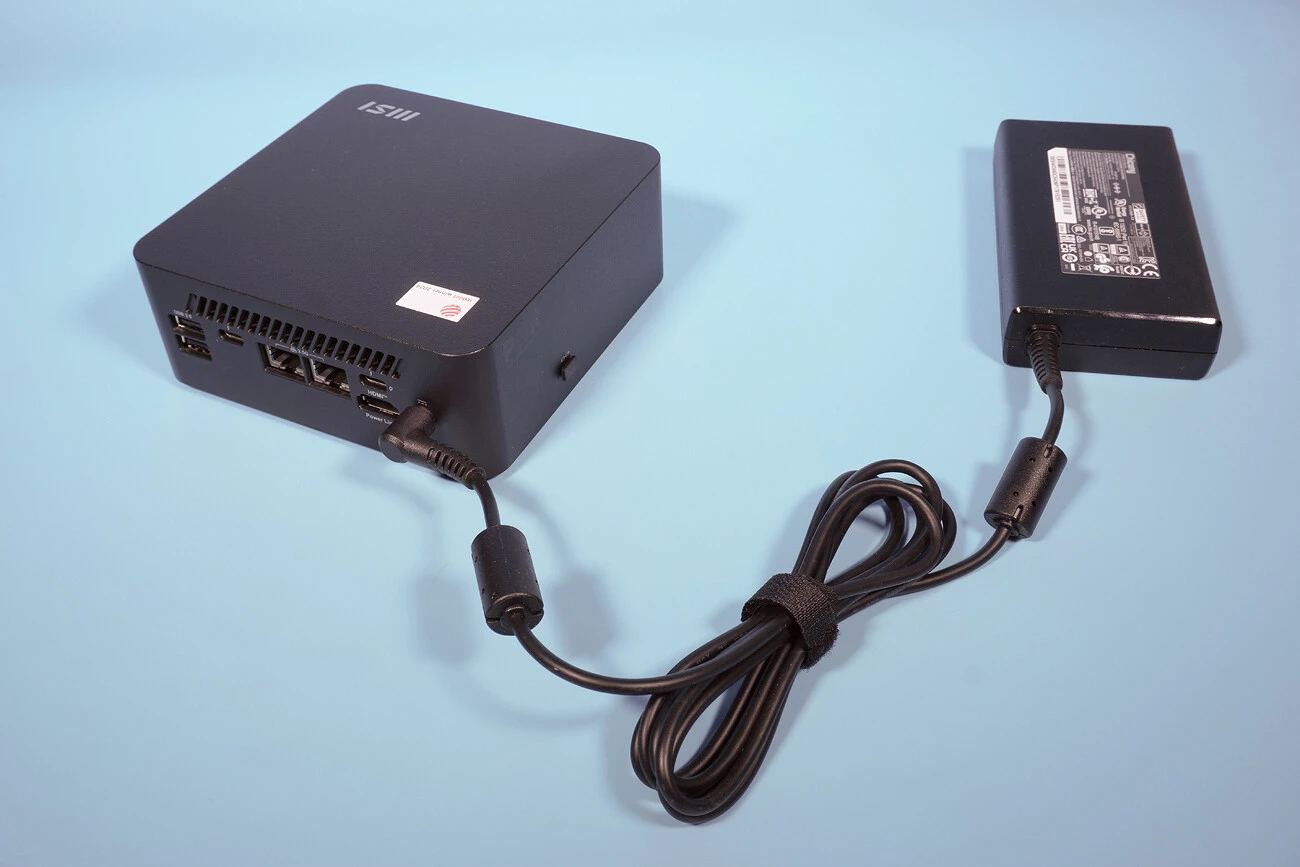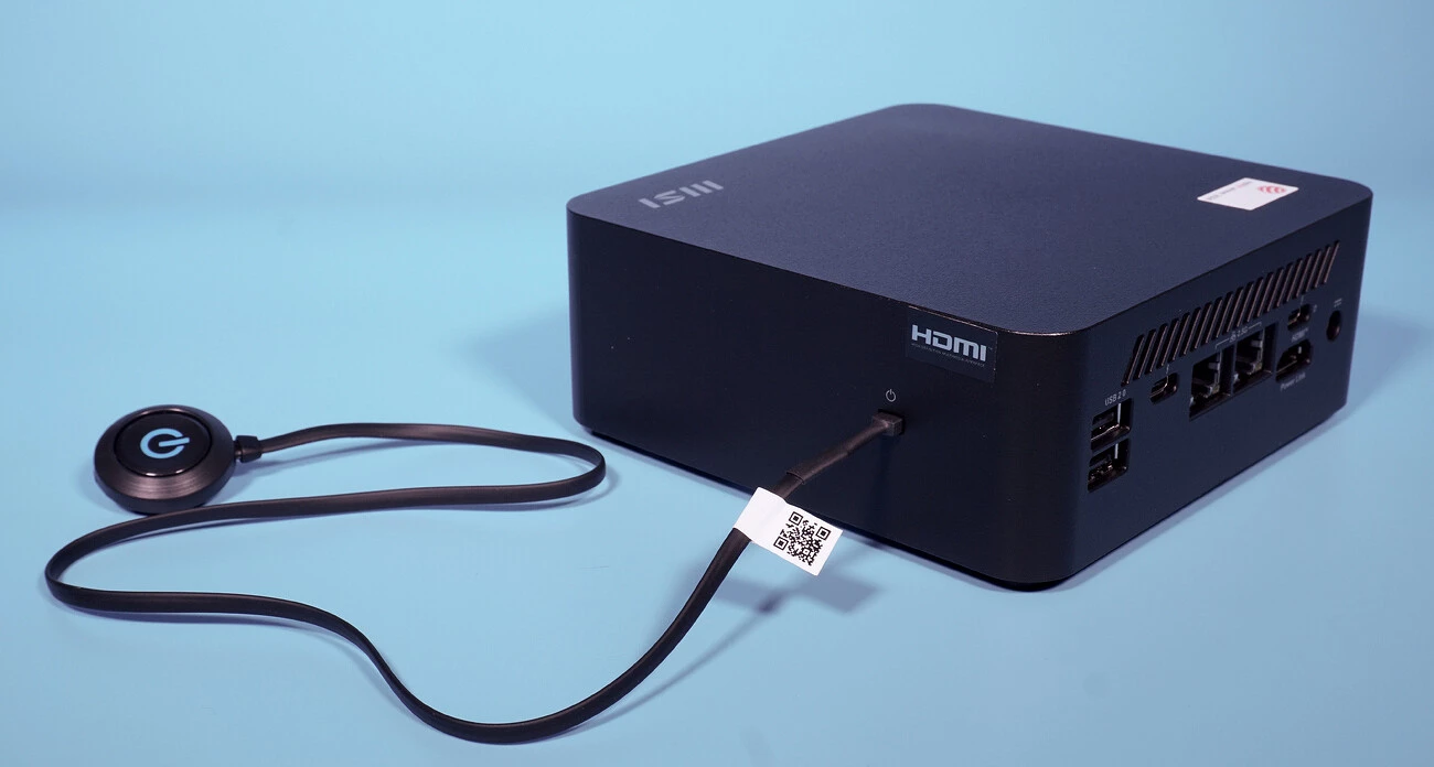В коробке с MSI Cubi NUC AI+ 2MG, кроме самого мини?ПК, находится блок питания на 120 Вт с отсоединяемым кабелем, краткая инструкция и отдельная выносная кнопка включения.