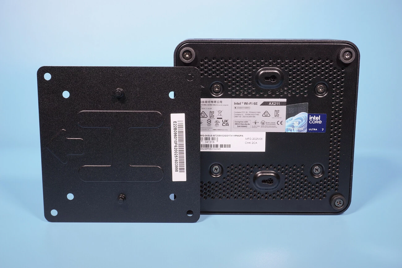 Габариты устройства — 13,6 х 13,3 x 5 см, вес — 625,7 г. Такие параметры позволяют разместить мини?ПК за монитором, на полке или закрепить на стене с помощью VESA?крепления — в комплекте есть соответствующий кронштейн. Это особенно удобно в офисных условиях, где важно экономить пространство.