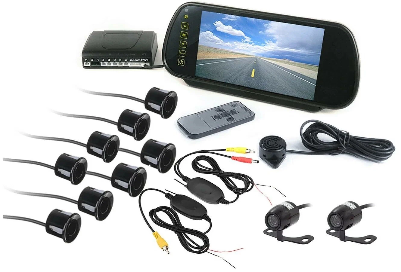 Модель включает 8 датчиков, которые считывают расстояние до препятствия — по 4 на передний и задний бамперы. Две видеокамеры позволяют оценить обстановку снаружи не только с помощью сигналов, но и собственными глазами. Изображение передается на 7-дюймовый монитор, который устанавливается на салонное зеркало.