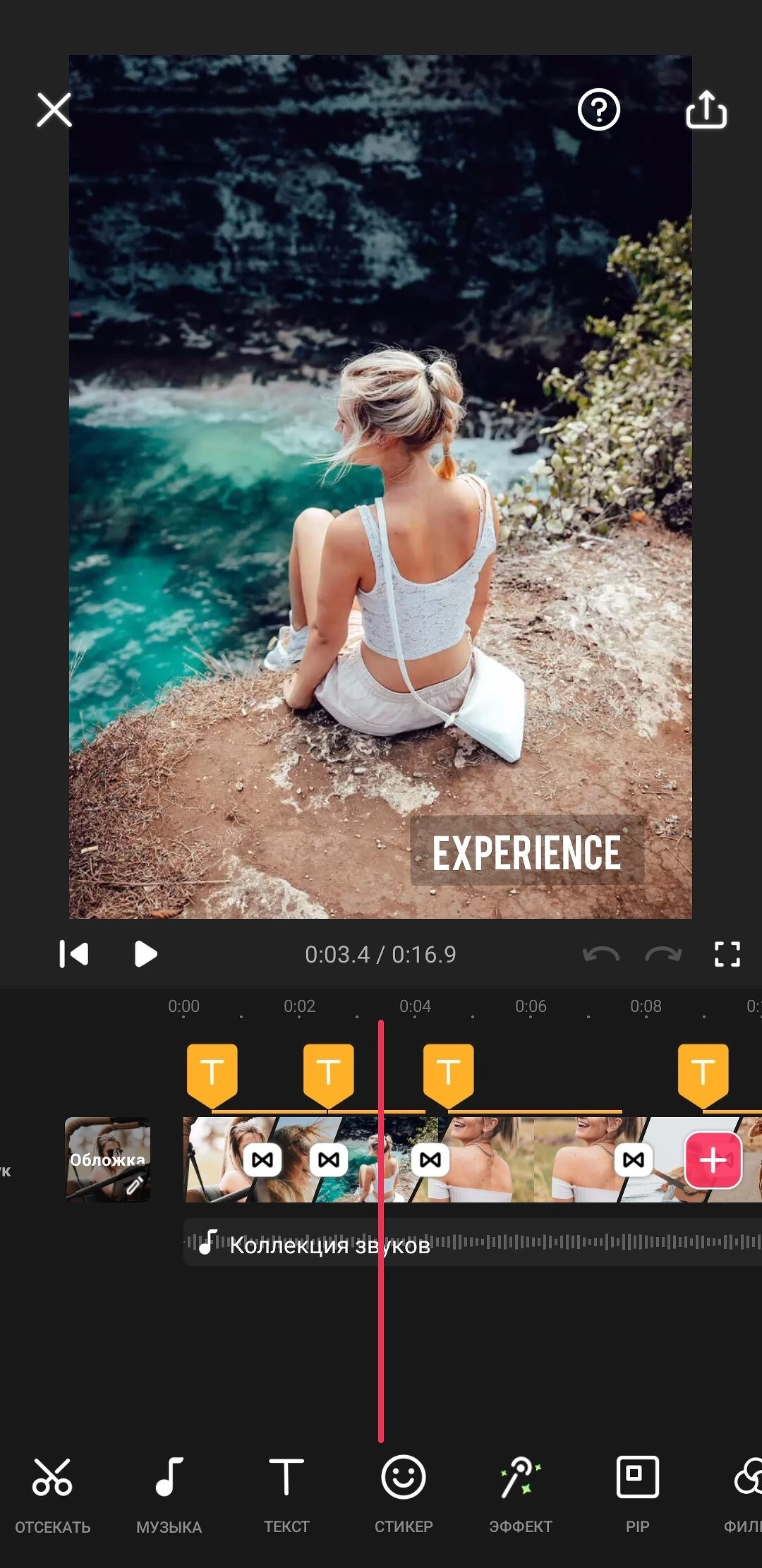 Мобильная версия популярного видеоредактора на ПК, доступная на iOS и Android. Сначала нужно пройти обучение, которое познакомит пользователя с основными функциями. Далее можно приступать к созданию видео.