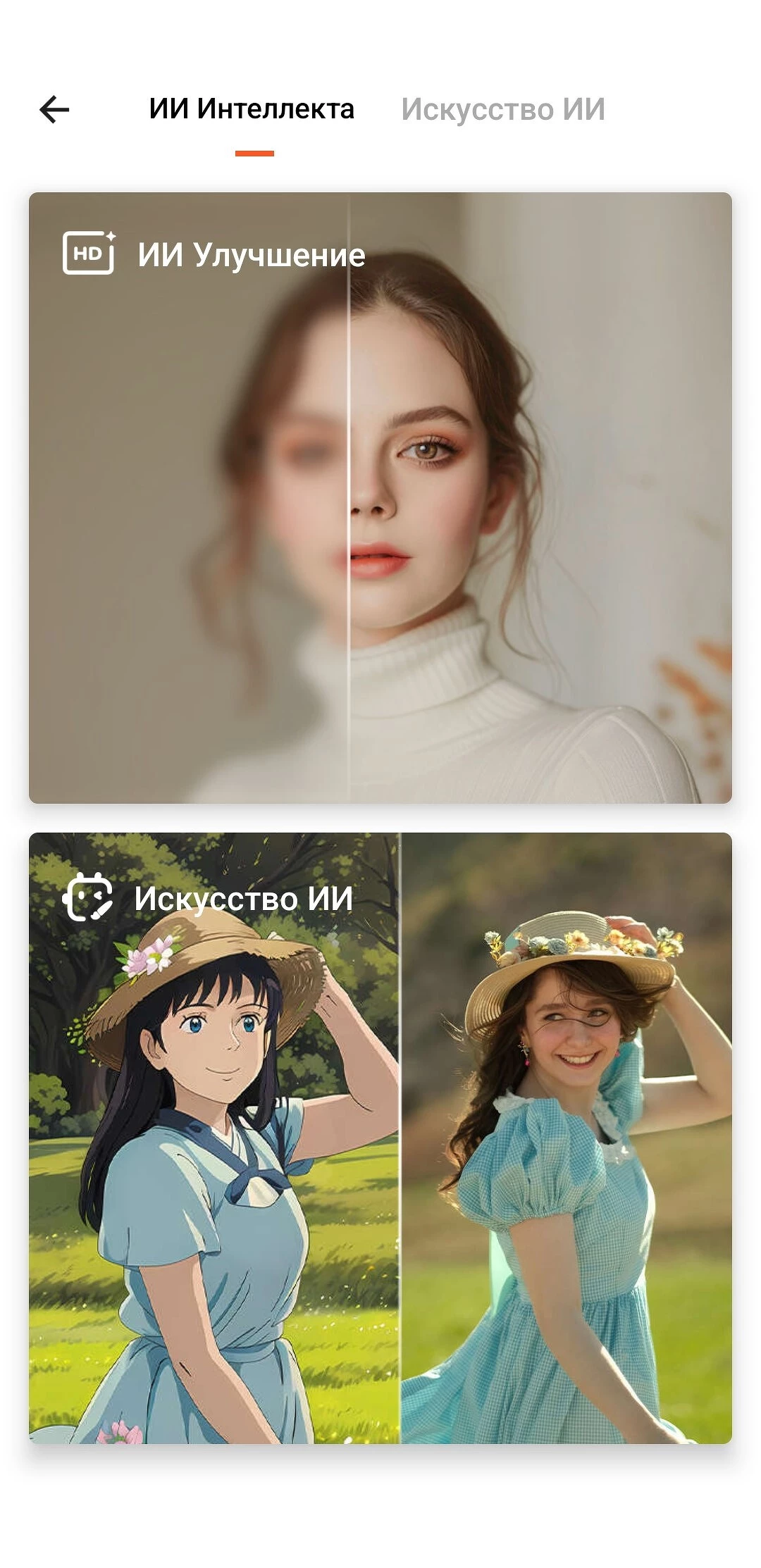 Video.Guru подойдет для новичков, которые только осваивают видеомонтаж. В приложении не так много функций, все они базовые — это видеоэффекты, изменение заднего фона и скорости видео, текст, стикеры и музыка. Из ИИ-инструментов доступны две опции: улучшение видео и обработка фото, например, в стиле аниме, ретушь и другое.