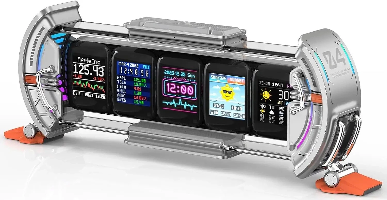 Times Gate — это многофункциональный гаджет, у которого пять небольших экранов с разрешением 128х128 пикселей в одном корпусе. Любая картинка будет превращена в пиксельное изображение, можно создавать собственные анимации или загружать готовые, добавлять к ним текст и так далее.